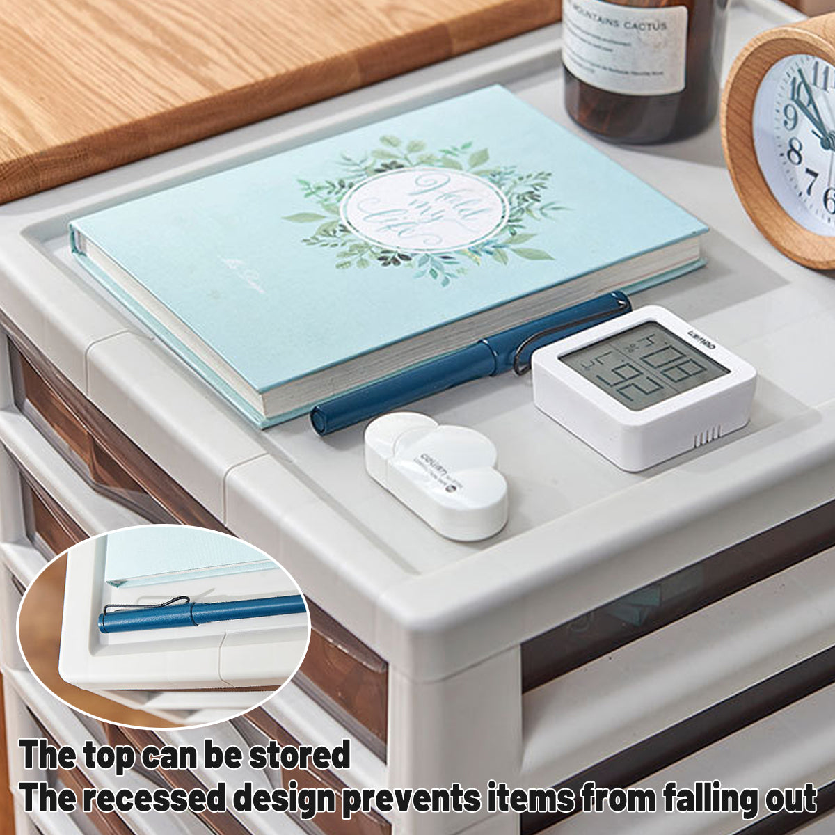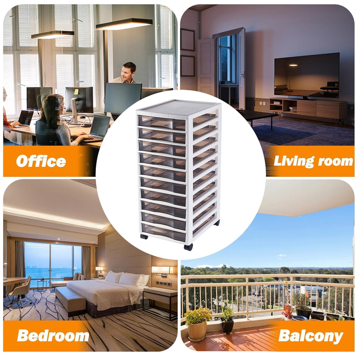 Upgrade your home or office organization with this 10-layer movable chest of drawers. Made of durable plastic, it features transparent drawers for easy item identification and 360° universal wheels for smooth mobility. The recessed top design helps prevent items from slipping, making it suitable for storing office supplies, personal items, or household essentials in living rooms, bedrooms, balconies, and more.