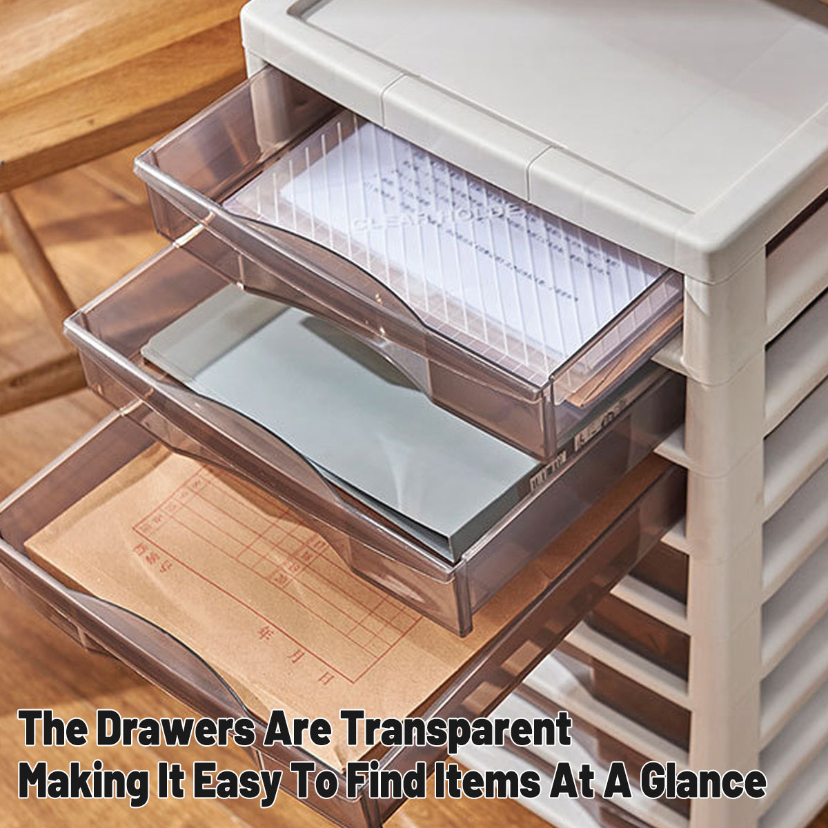 - 10 Transparent Drawers: Clear fronts allow quick recognition for efficient storage.