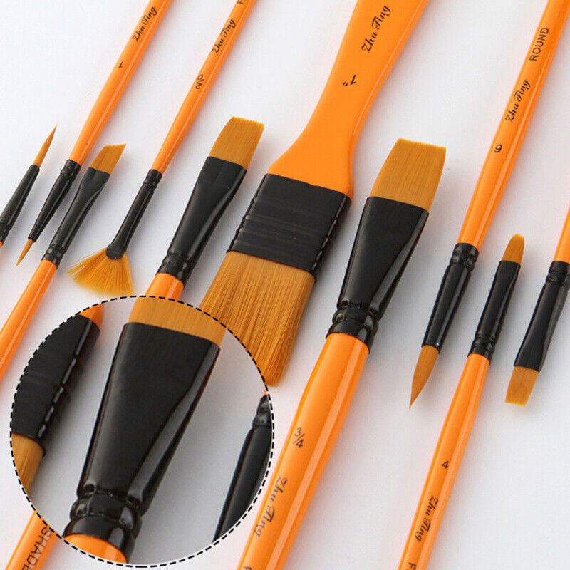10 Pcs Acrylic Paint Brush Set Taklon Bristles Wooden Handle