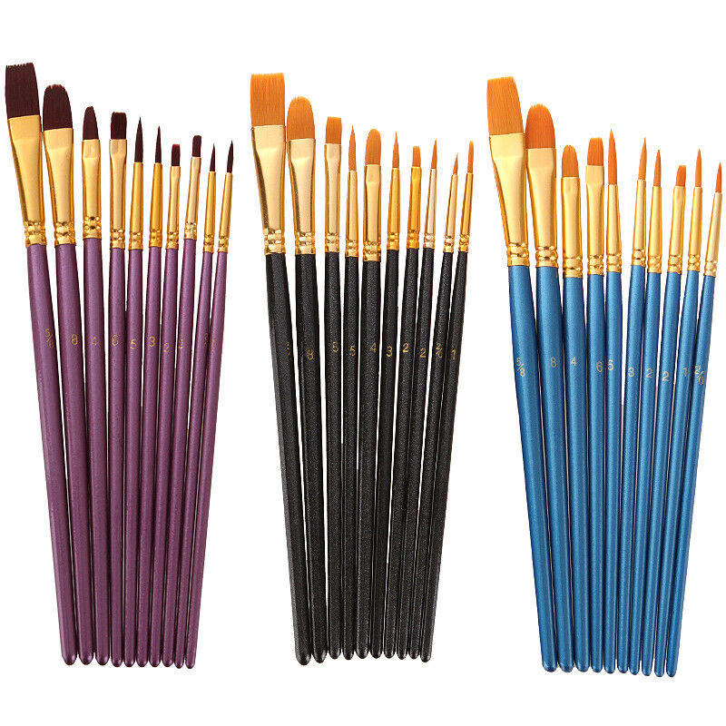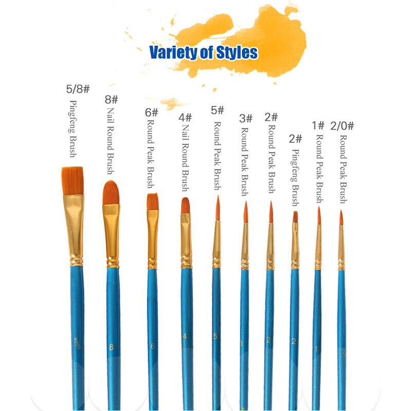 10 Pcs Artist Paint Brushes Set Nylon Bristle Wooden Handle