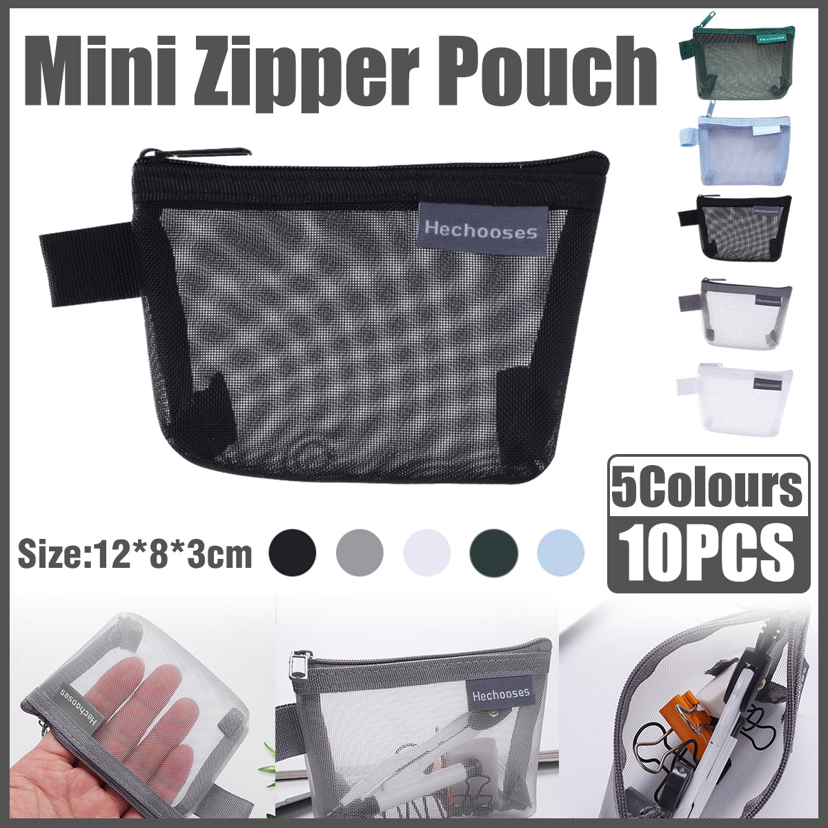 10 Pcs Mini Mesh Zipper Pouches Nylon Coin ID Card Holder
