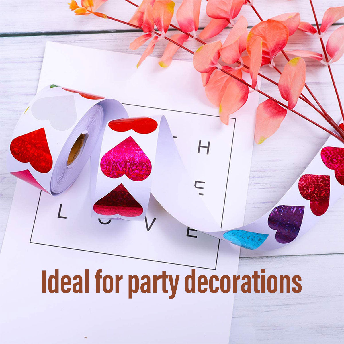 - 5 Rolls of Self-Adhesive Heart Stickers (500 per roll).