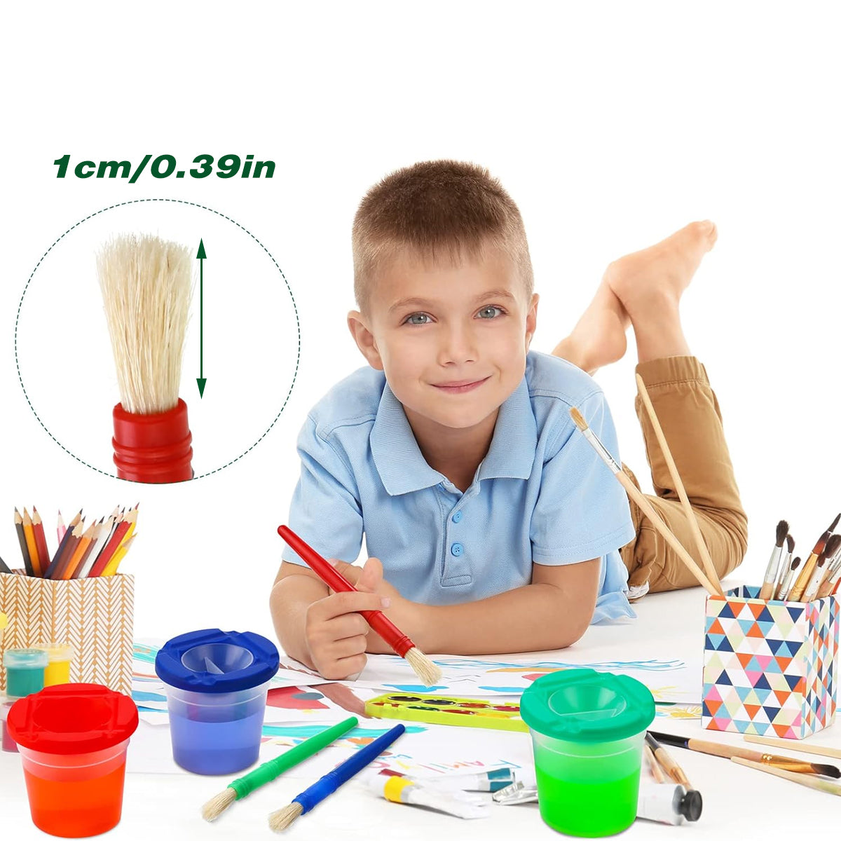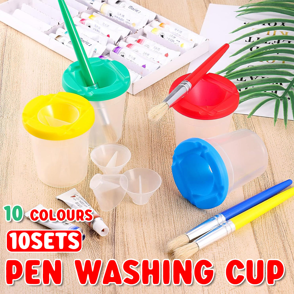10 Sets Kids Painting Wash Cups with Pig Bristle Brushes
