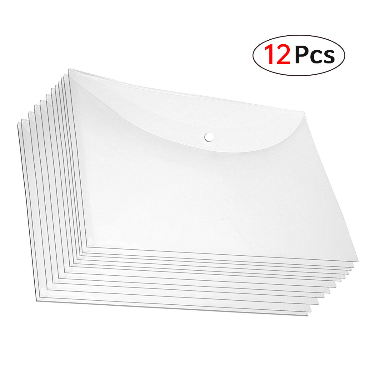 12 Pcs A4 Plastic File Bags with Button Closure Clear