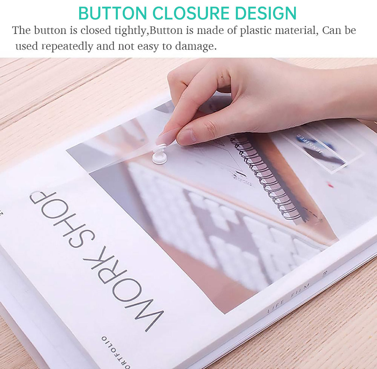 - Button Closure Design: Secure button keeps documents in place and prevents slipping.
