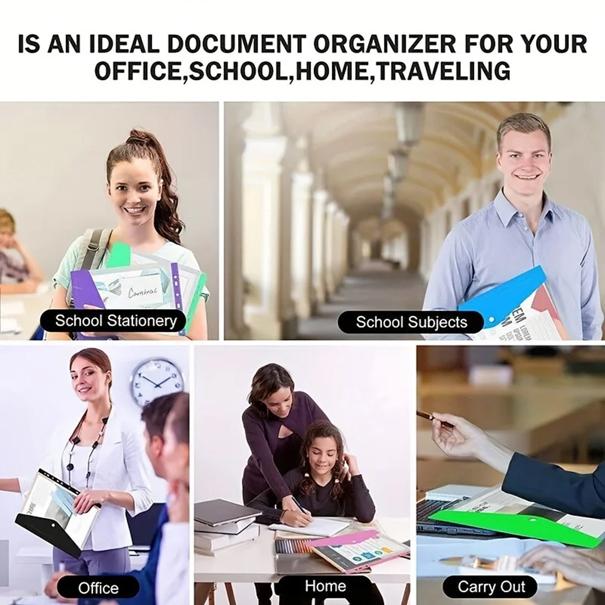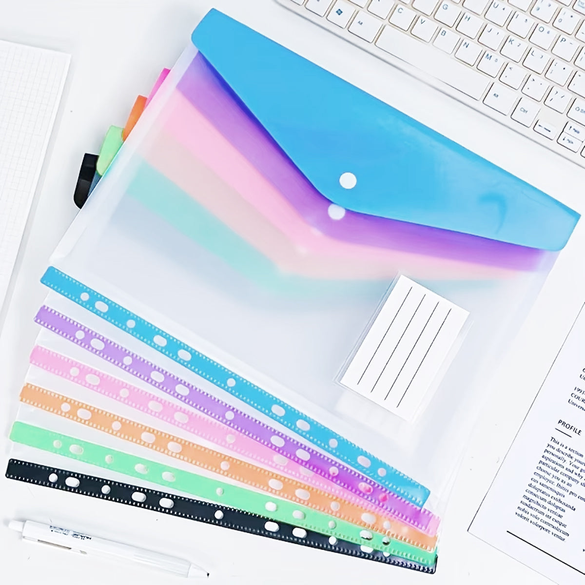 This 12PCS A4 document storage bag set keeps your papers neat and secure. Made of durable PP material, each has an 11-hole design for binders, a snap closure to hold papers safely, and a clear finish for easy identification. Suitable for school, office, or home use, they protect documents from dust and moisture while boosting workspace organisation.