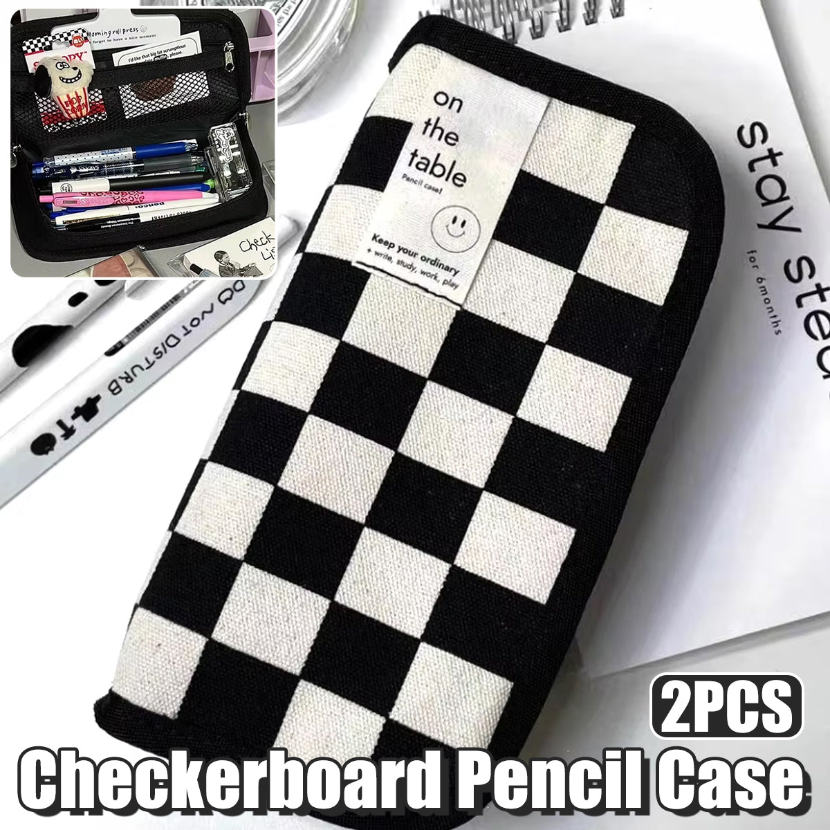 This set includes two large-capacity checkerboard pencil cases made from durable canvas. Each pouch offers ample space for pens, pencils, rulers, and essentials, with a bold black-and-white pattern and a smooth zipper for everyday school or home use.