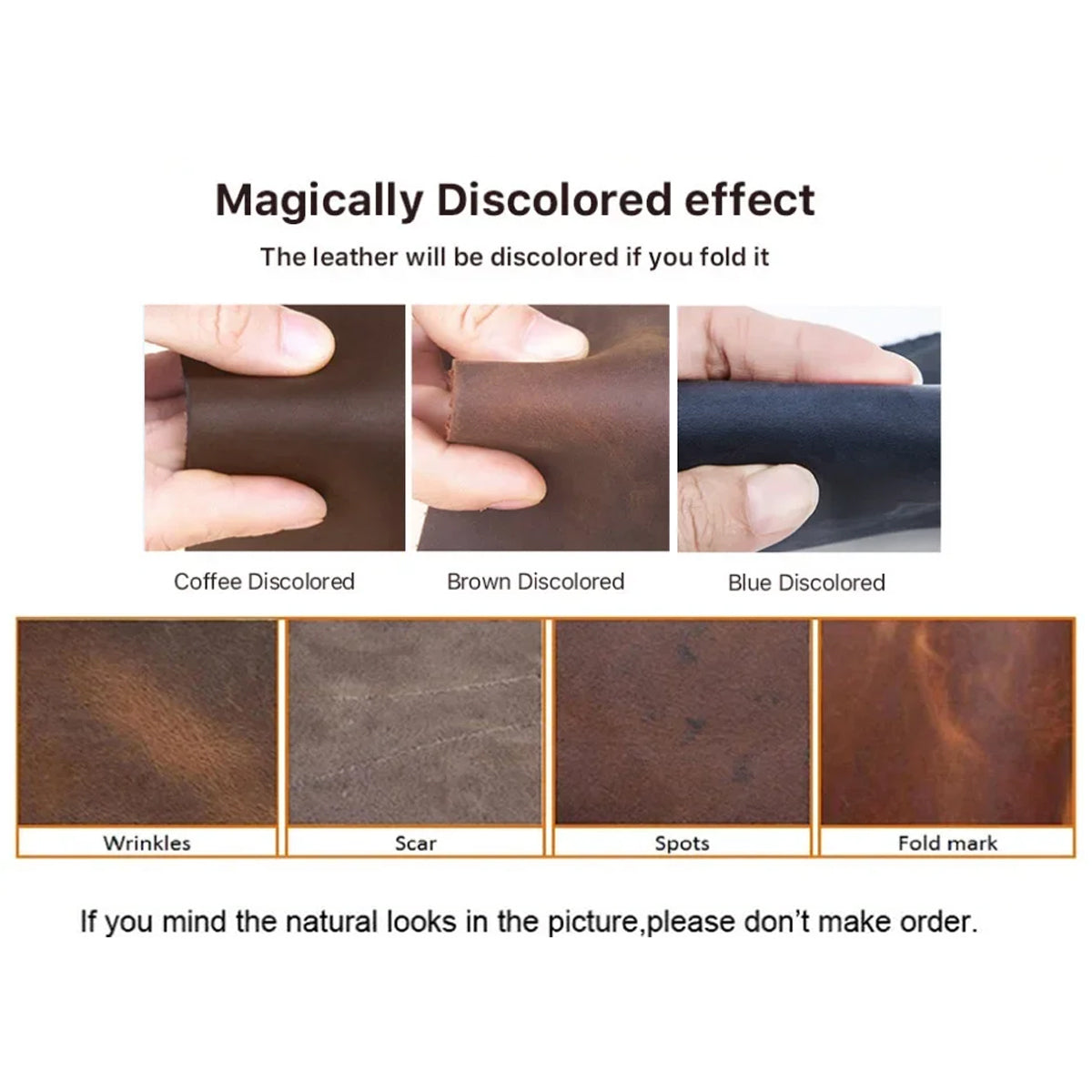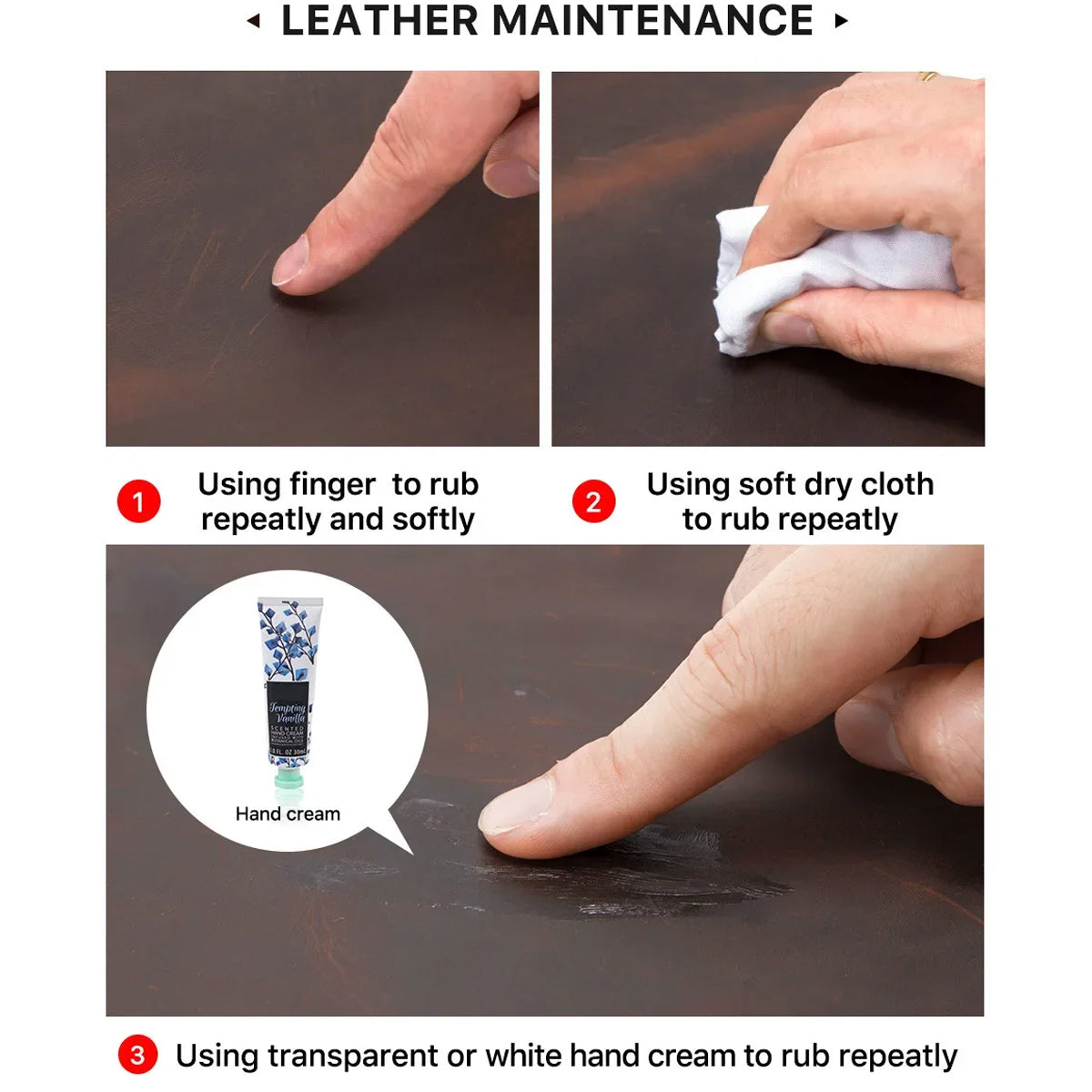 - Genuine Cowhide Leather: Durable leather surface that develops character over time.