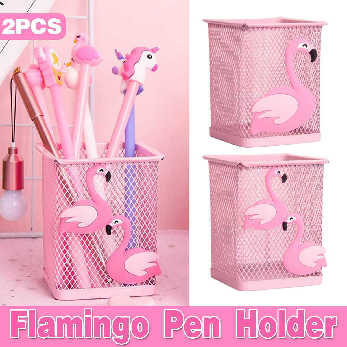 2 Pcs Mesh Pen Holder Flamingo Design Pink Metal Organiser
