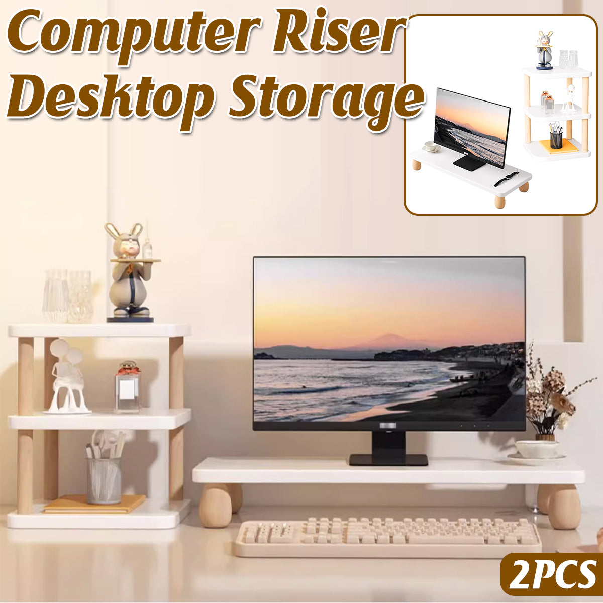 2 Pcs Monitor Riser and Desktop Storage Shelf MDF Beech Wood