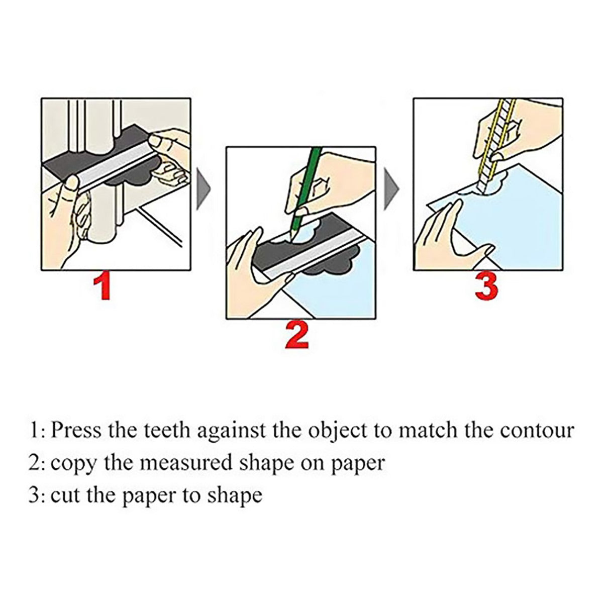 This 20 inch contour profiler is designed to simplify complex shape replication for carpentry, sheet metal work, and DIY projects. Made from durable ABS material, it allows accurate contour copying by pressing directly against an object and transferring the shape onto wood, tile, or other materials. With a long profiling length and deep measuring range, it is suitable for capturing large and intricate contours for both professional and home use.