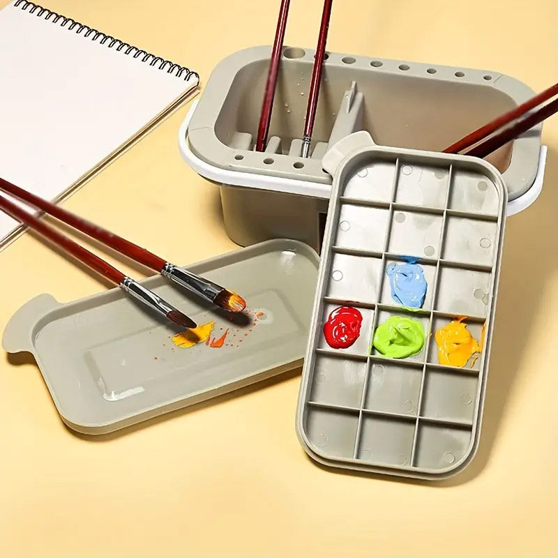 3-in-1 Pen Wash Bucket with Palette and 18 Compartments