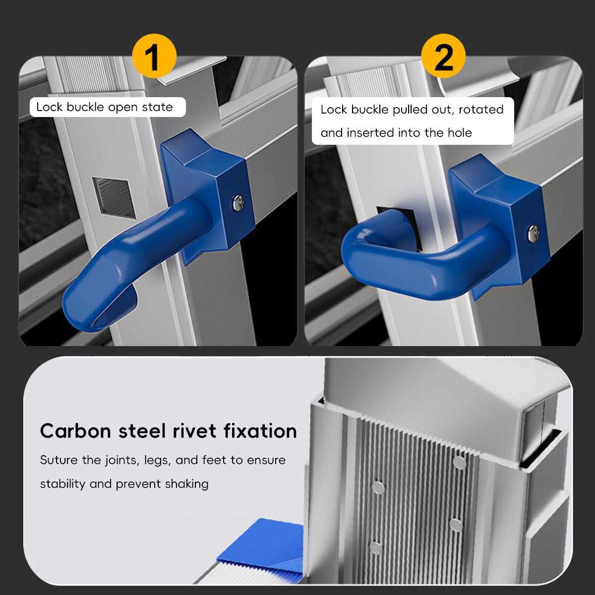 This 3-step folding ladder is made from durable aluminum alloy, offering stable support for home, kitchen, and garage tasks. Its lightweight structure allows easy handling, while the folding design ensures convenient storage when not in use.