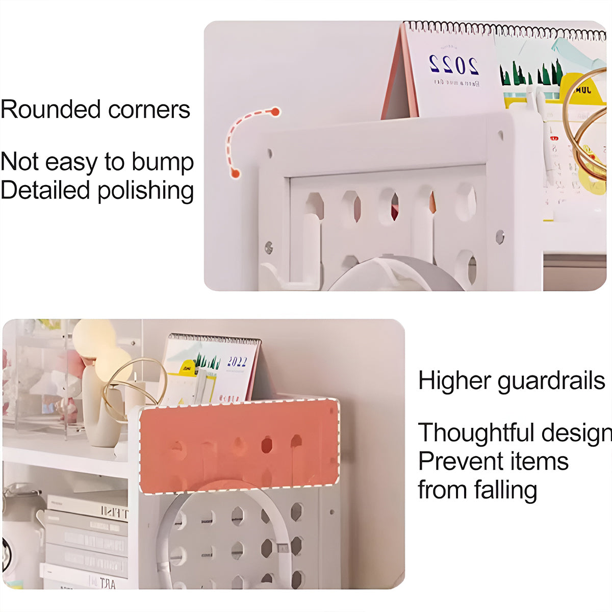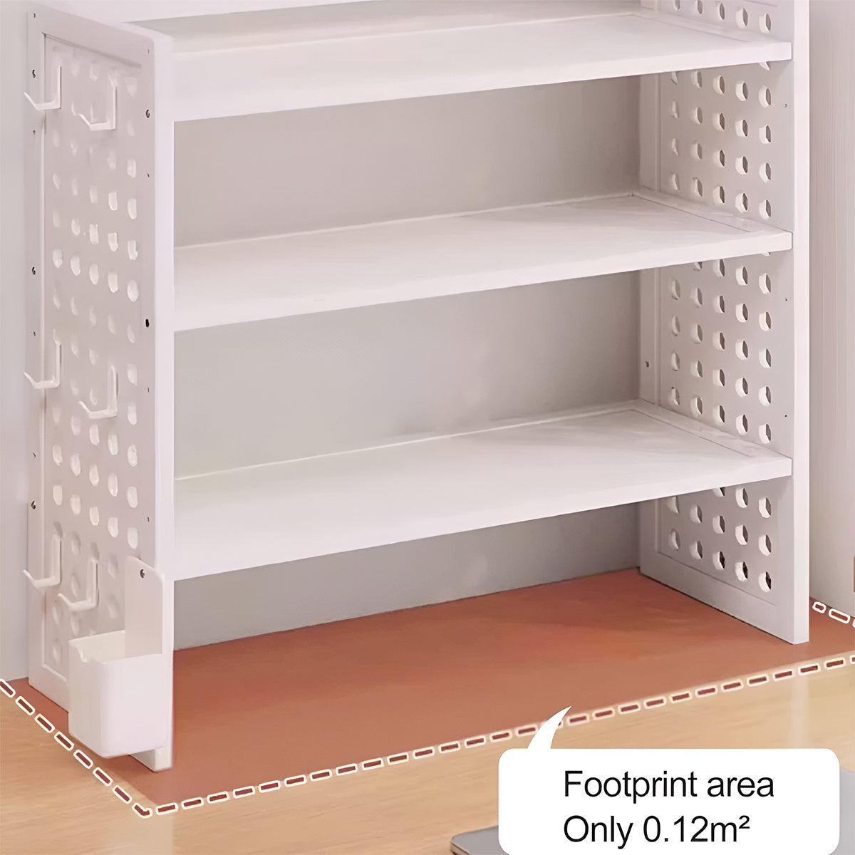 - Adjustable Shelves: Layered boards allow custom height settings using the hole-board system.