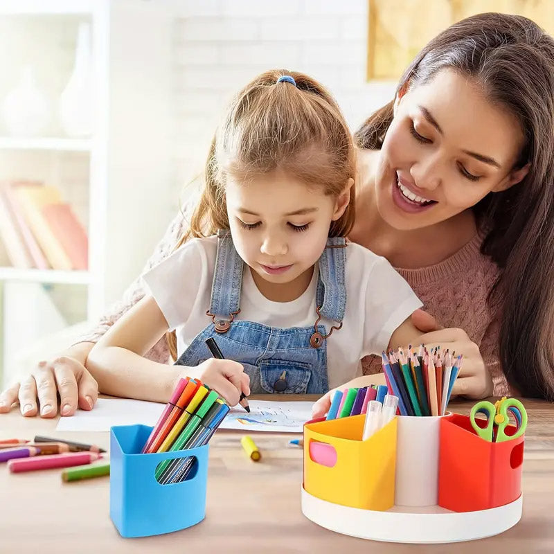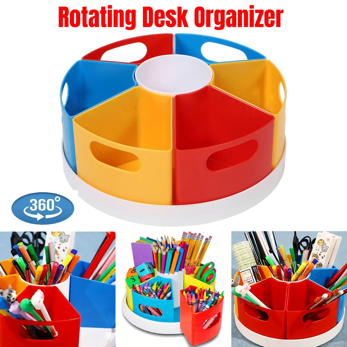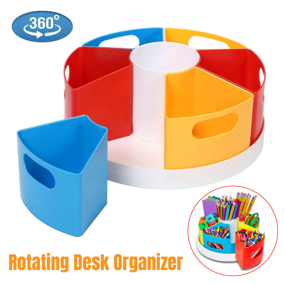 Keep your workspace neat with this 360 degree rotating pen holder. Six roomy compartments and a smooth swivel base offer quick access to pens, markers, scissors, and small tools, while the colourful bins and sturdy plastic build add functional style to offices or study areas.