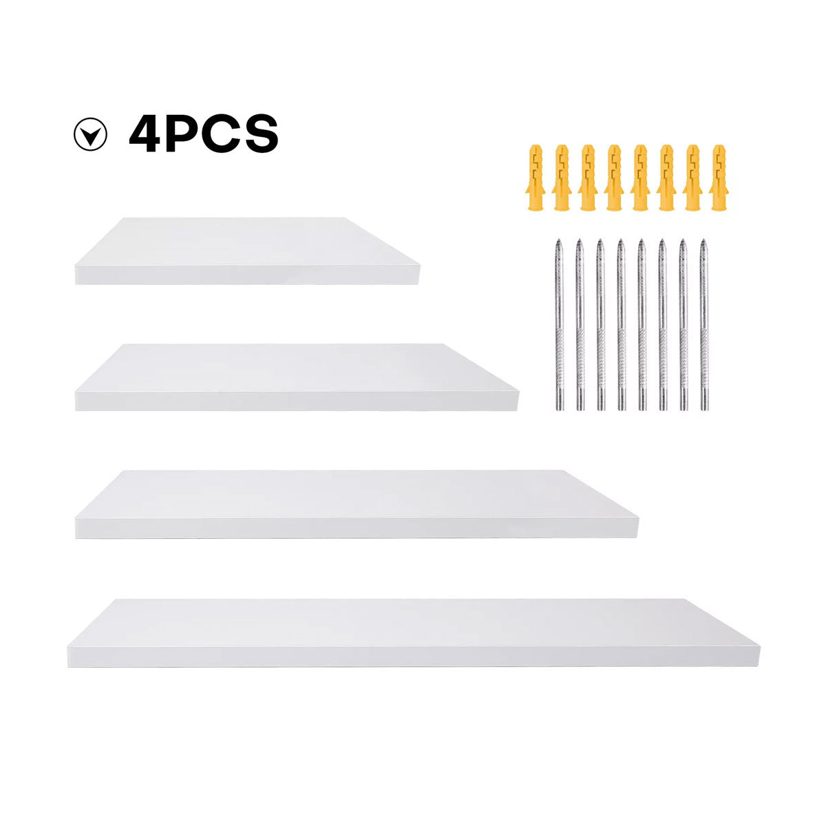 - 4 × Wooden Floating Wall Shelves (one of each size)