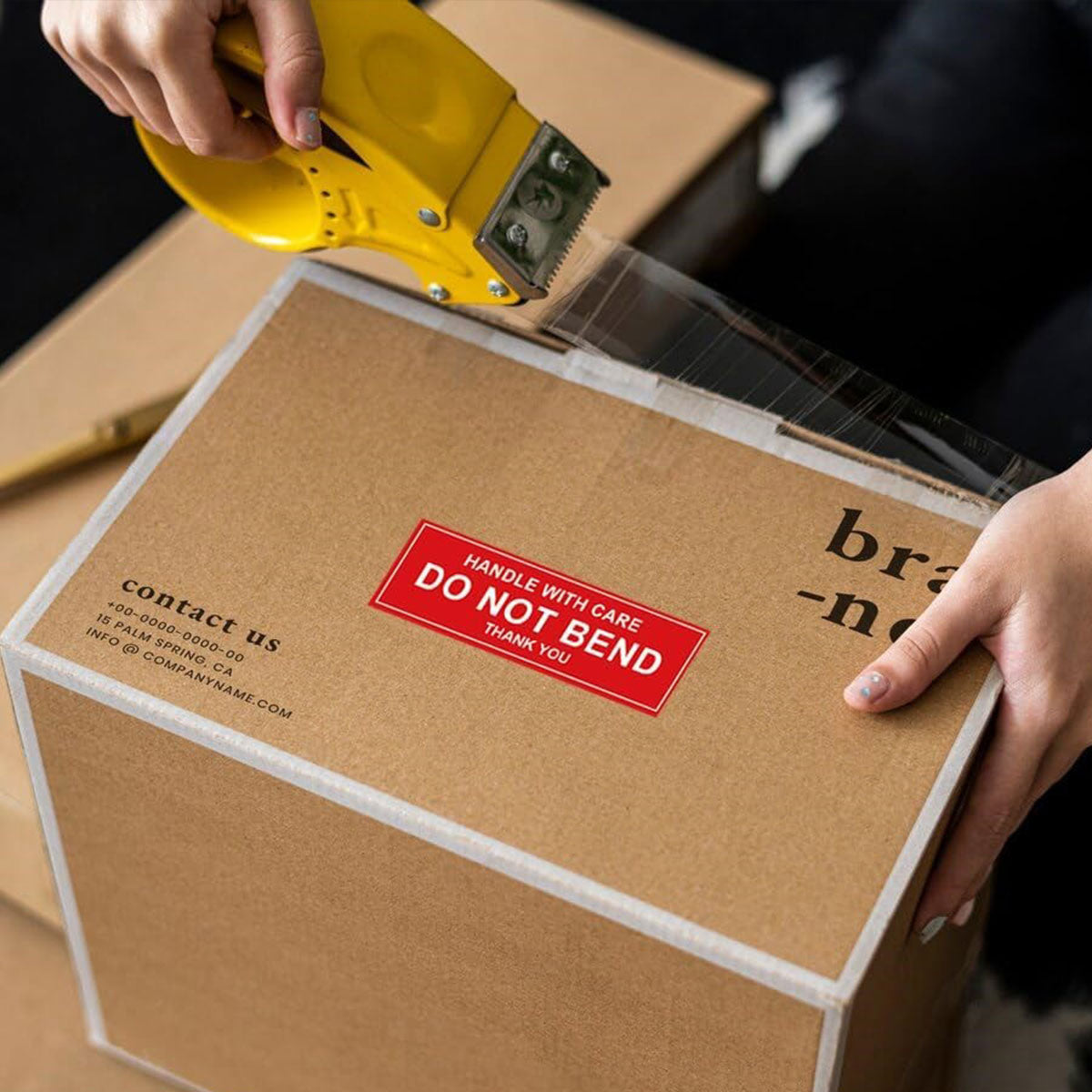 These fragile warning label stickers are designed to help protect delicate items during packaging, storage, and transport. Each roll includes clear red labels with white text for easy visibility. Made with water-based adhesive, the stickers bond securely to various surfaces and are suitable for marking packages that require careful handling.