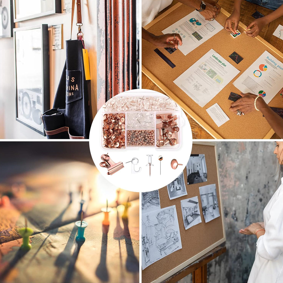 465 Pcs Rose Gold Office Clip and Pin Set with Storage Box