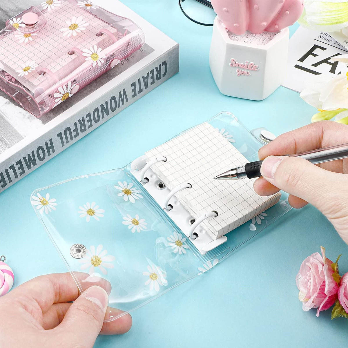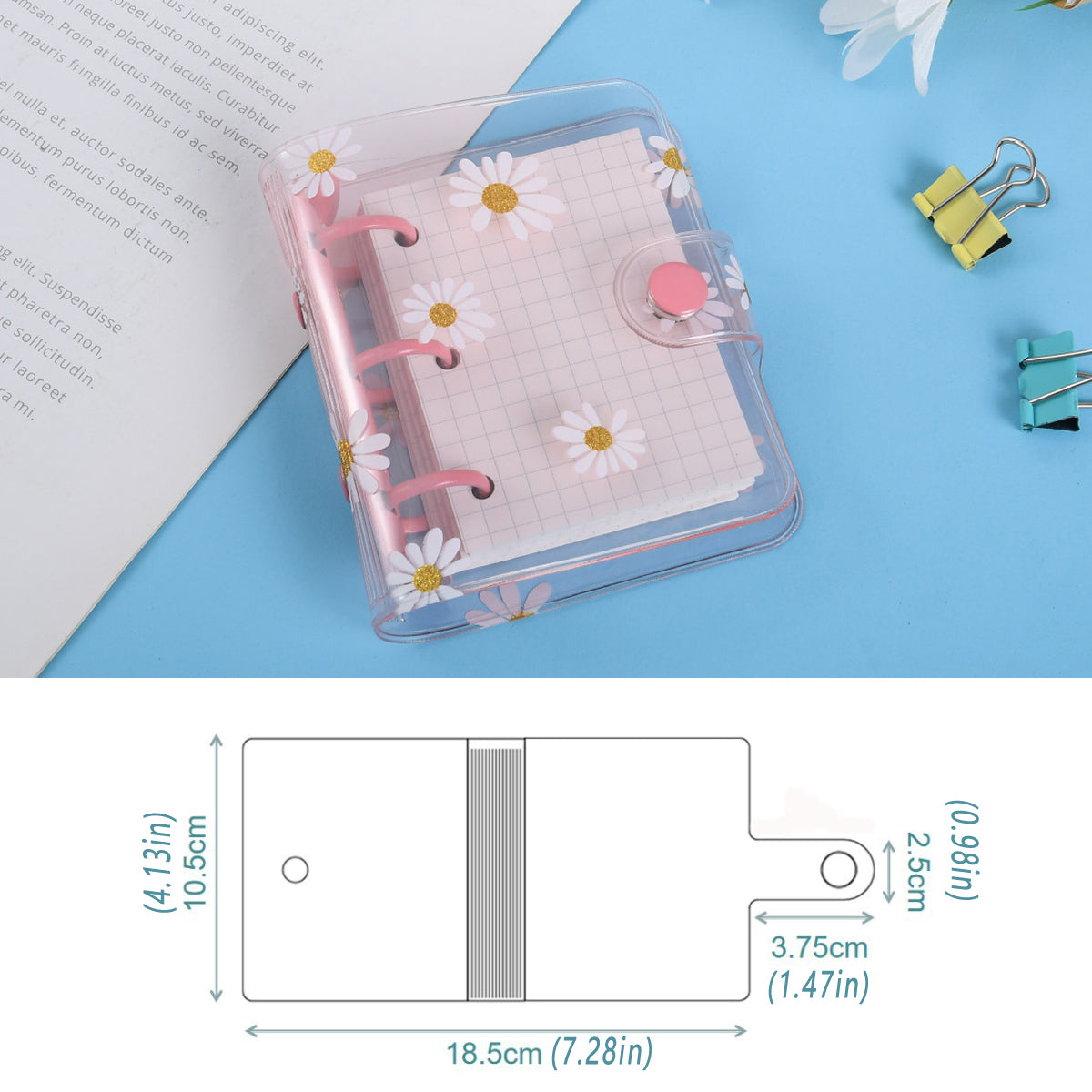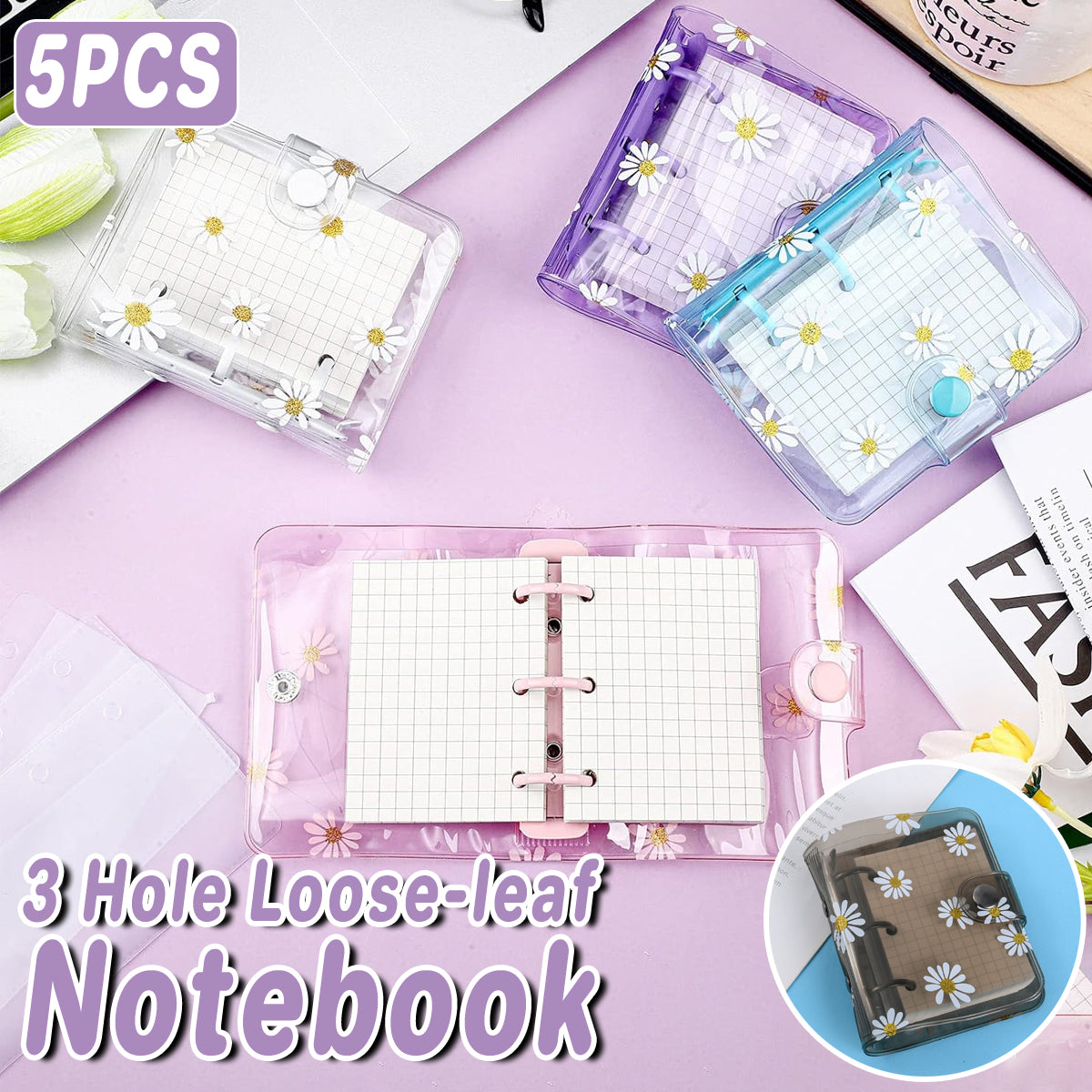 5 Pcs Mini 3-Hole Loose-Leaf Notebooks Clear PVC Daisy Cover