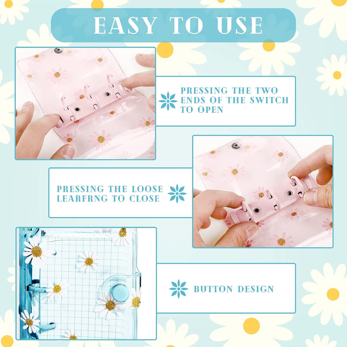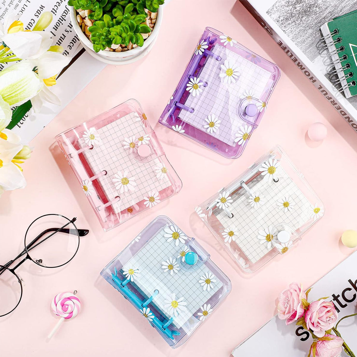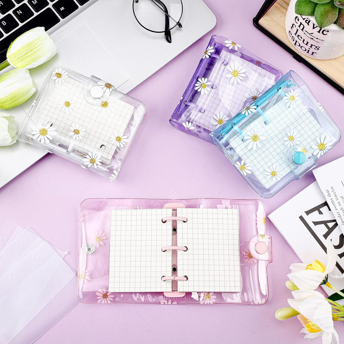 5 Pcs Mini 3-Hole Loose-Leaf Notebooks Clear PVC Daisy Cover