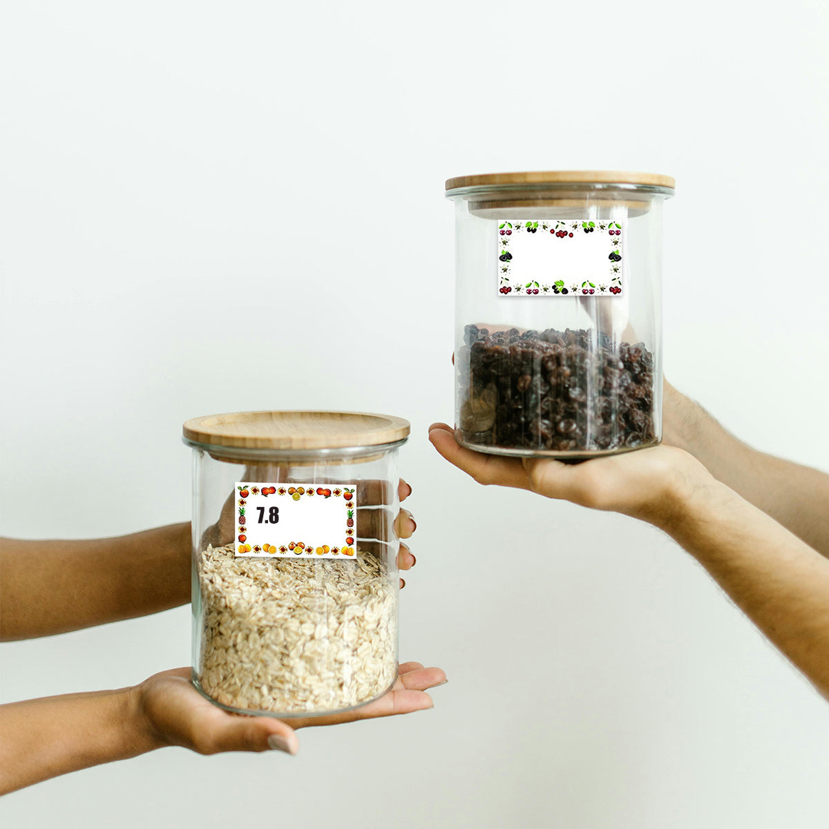 These decorative self-adhesive labels are designed for versatile use in kitchens, offices, and home organisation. Featuring colourful fruit-themed borders, each label provides a blank writing space suitable for identifying items, categorising storage, or personalising notebooks and packages. The roll format allows convenient access for daily tasks in various settings.