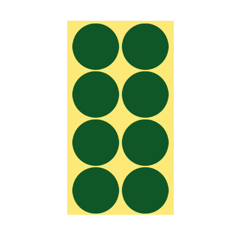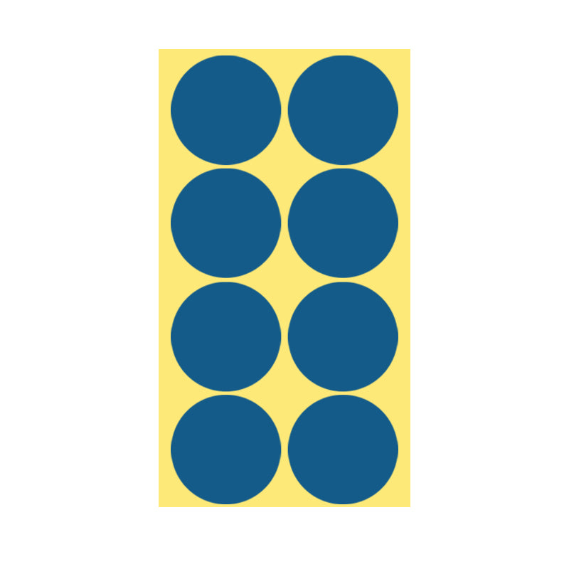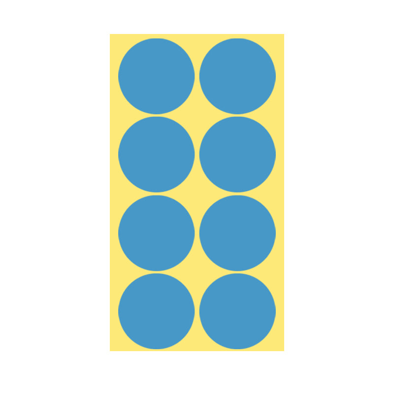 - Available Sizes & Quantity per Sheet: 50mm: 8 dots per sheet