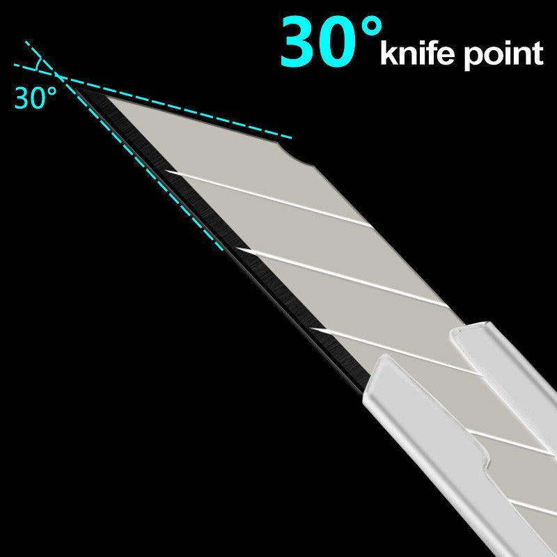 - Snap-off blade structure: Blade segments can be snapped off to expose a fresh edge.