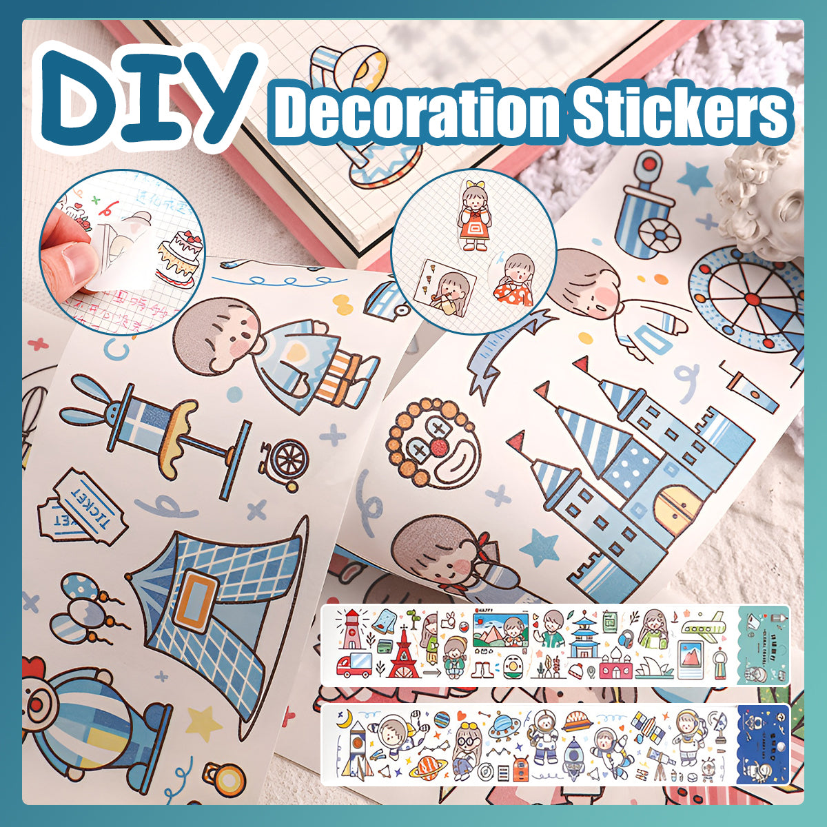 Add playful accents to planners, diaries, and scrapbooks with these DIY decoration stickers. The series offers eight styles featuring daily-life illustrations. Each sheet is easy to peel and apply, ideal for quick journalling, cardmaking, or notebook décor. Lightweight and portable, they suit school, home, or office crafting.