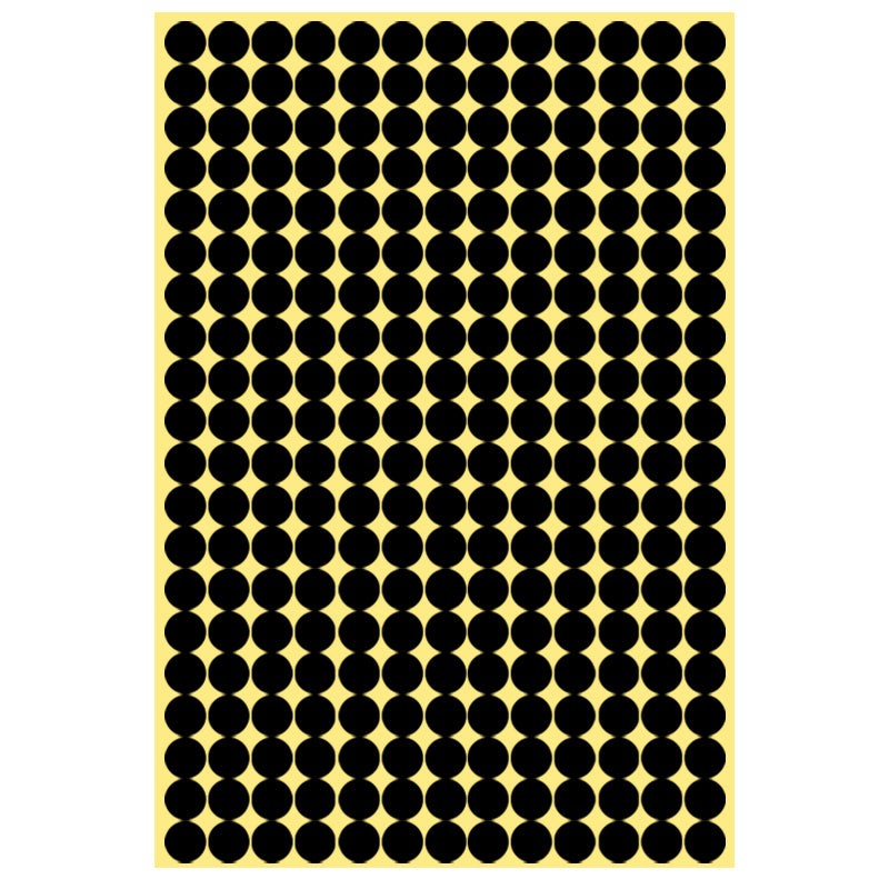 - Available Sizes & Quantity per Sheet: 8mm: 260 dots per sheet