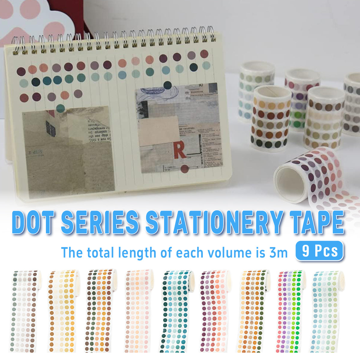 - 9 Pcs Washi Tape Set: Includes 9 rolls with assorted dot and gradient designs.