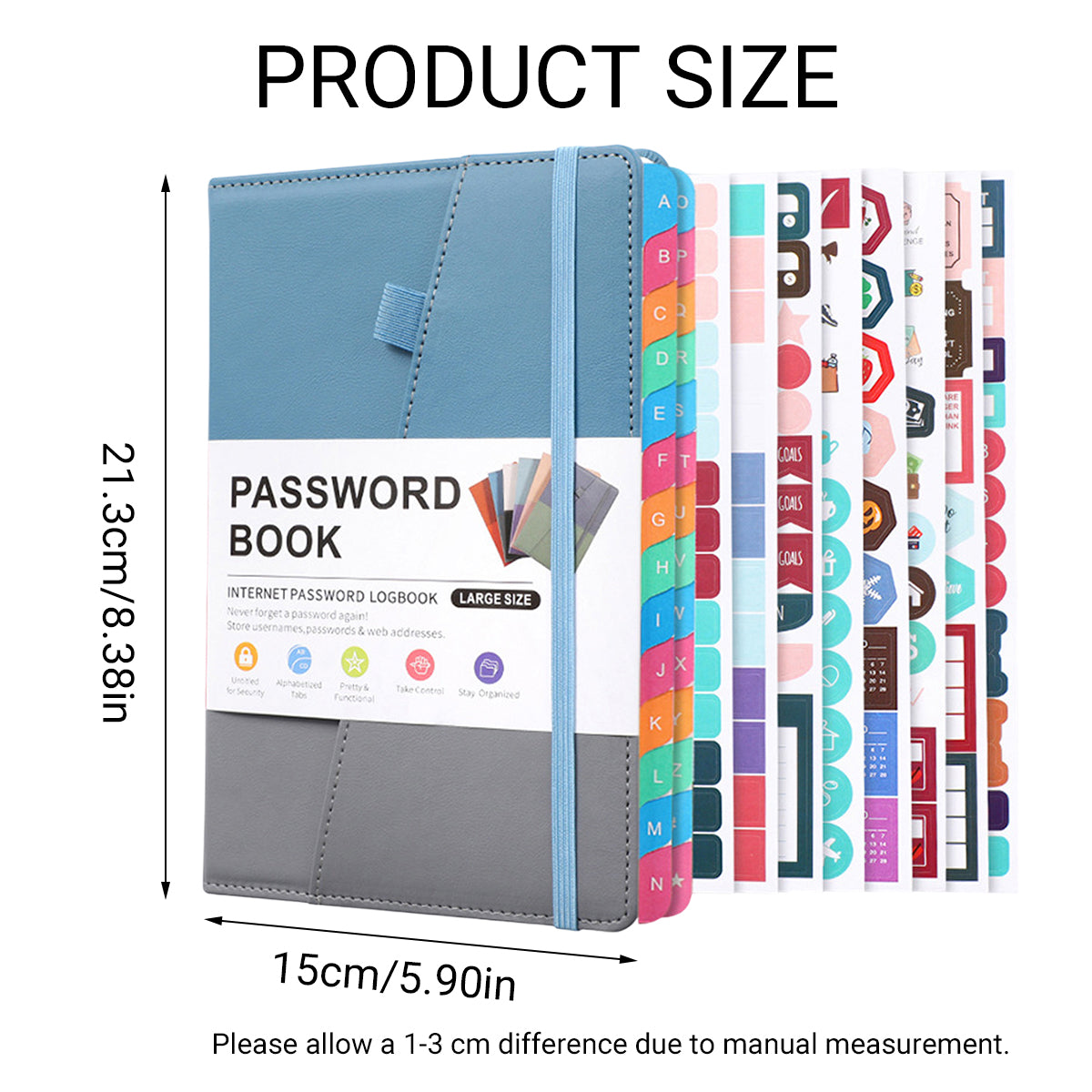 - 1 × A5 Password Book with Alphabetical Tabs + 8-Piece Planner Sticker Set