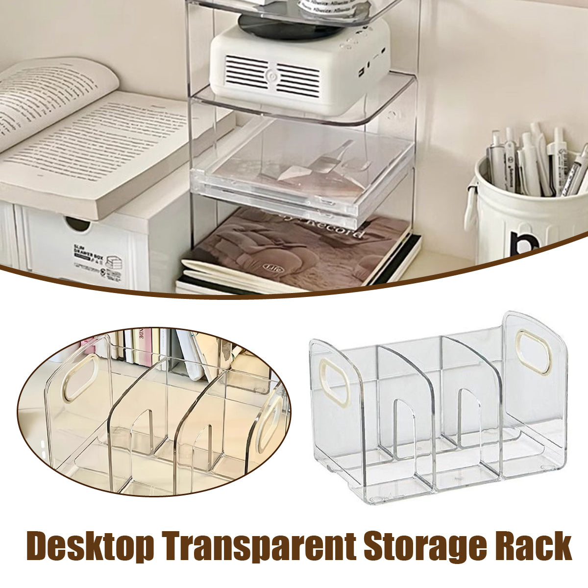 This acrylic desktop book stand and storage box keeps your workspace organised in a modern, minimalist style. The transparent design complements home or office décor while neatly storing books, files, and stationery. Made from durable acrylic with multiple compartments, it’s ideal for organising files, pens, notebooks, and other essentials on desks, shelves, or bedside tables.