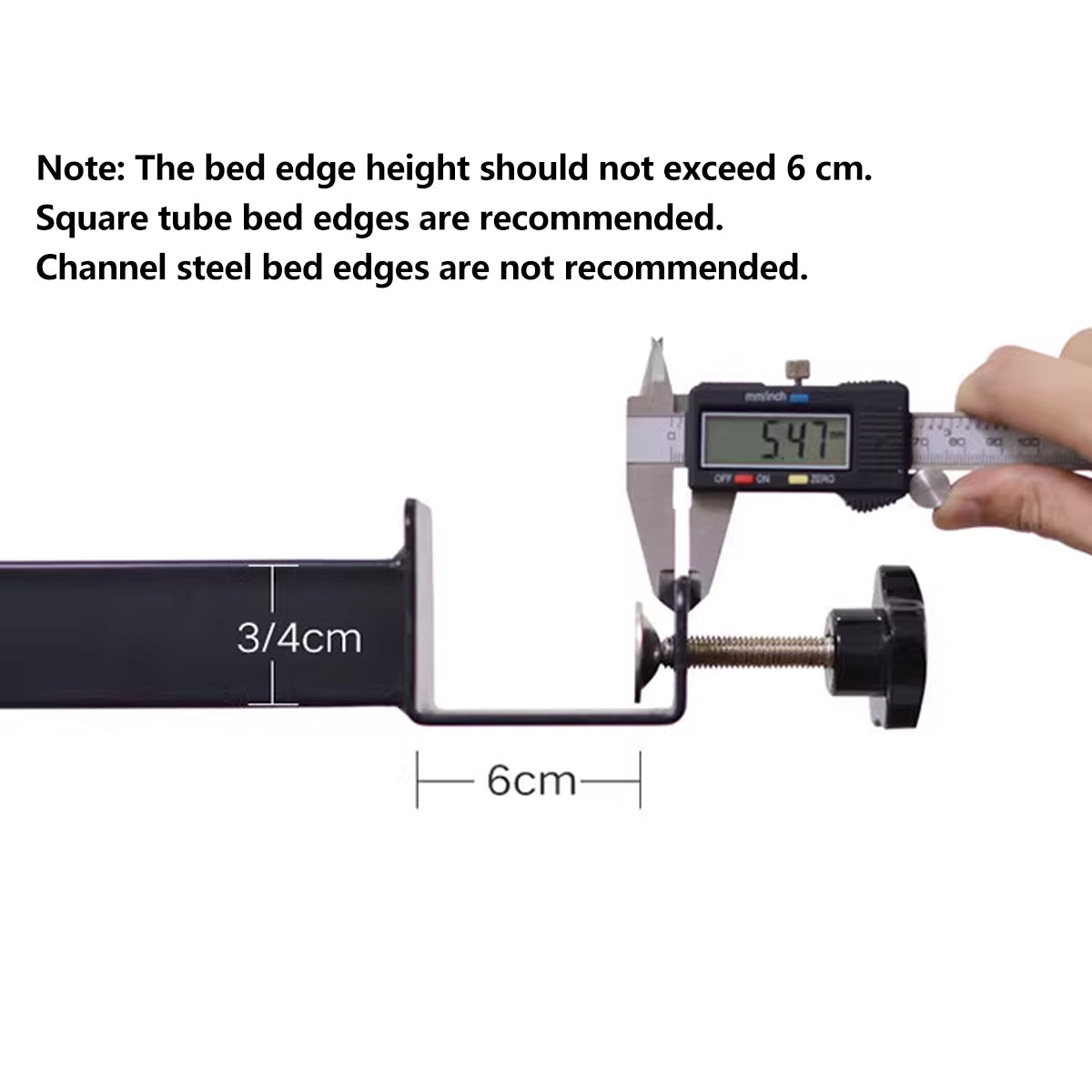 - Ensure the bed edge height does not exceed 6 cm and is a square tube type.