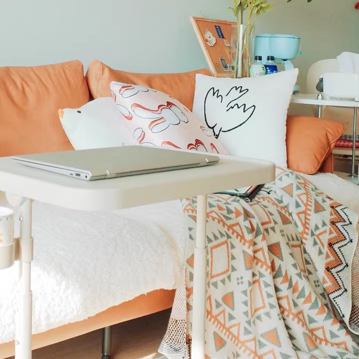 This mobile laptop desk is suitable for home and office environments, offering adjustable height and a tilt tabletop for added comfort during work or laptop use. Its foldable structure helps save space, while the 360° wheels enable easy movement around different areas such as the sofa, bed, or workspace. Designed with durable materials, it provides stable support and includes a removable cup holder for added convenience.