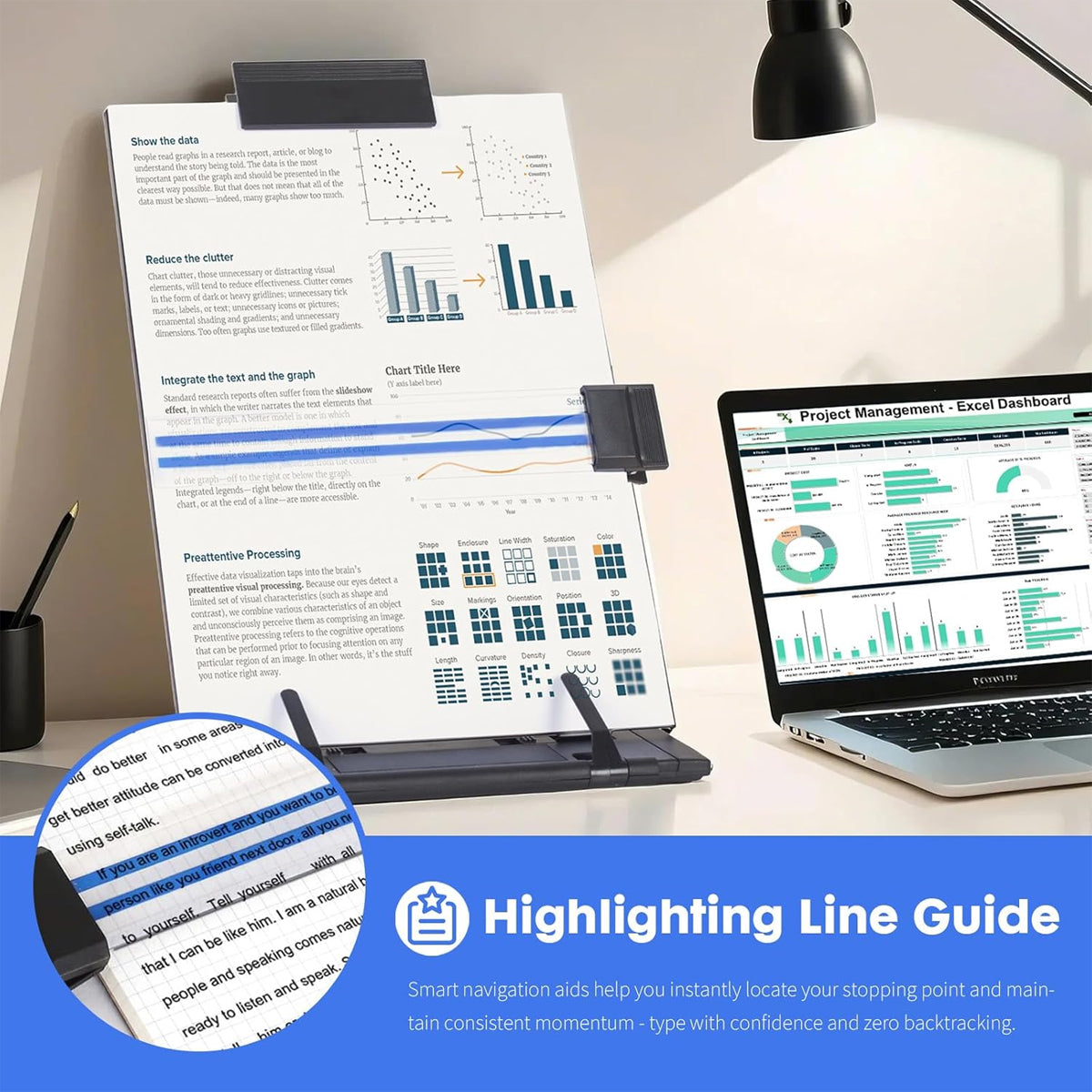 - Paper holder clip: The page support clip and textured middle area help prevent books from sliding.
