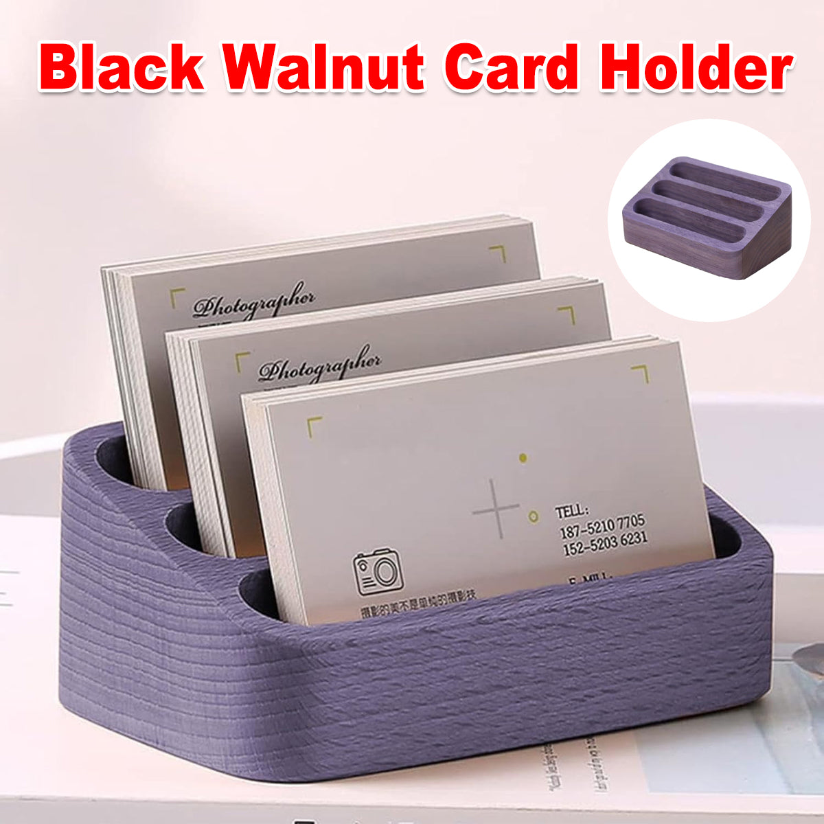 - 1 × Black Walnut 3 Compartment Card Holder