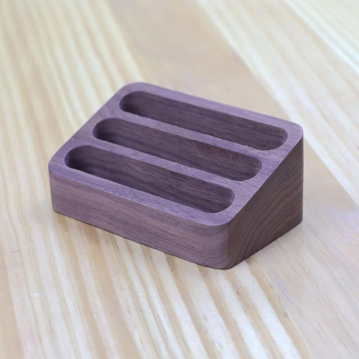 Organize your desk with elegance using this Black Walnut Card Holder. Crafted from premium black walnut wood, this card holder combines function with style, providing a sophisticated solution for organizing business cards, notes, or small documents. The natural wood grain and sleek design make it a perfect addition to any professional setting, whether it’s an office, meeting room, or reception area. Its three-compartment design allows for easy sorting and quick access, making it not only an organizational tool but also a stylish decor piece for any workspace.