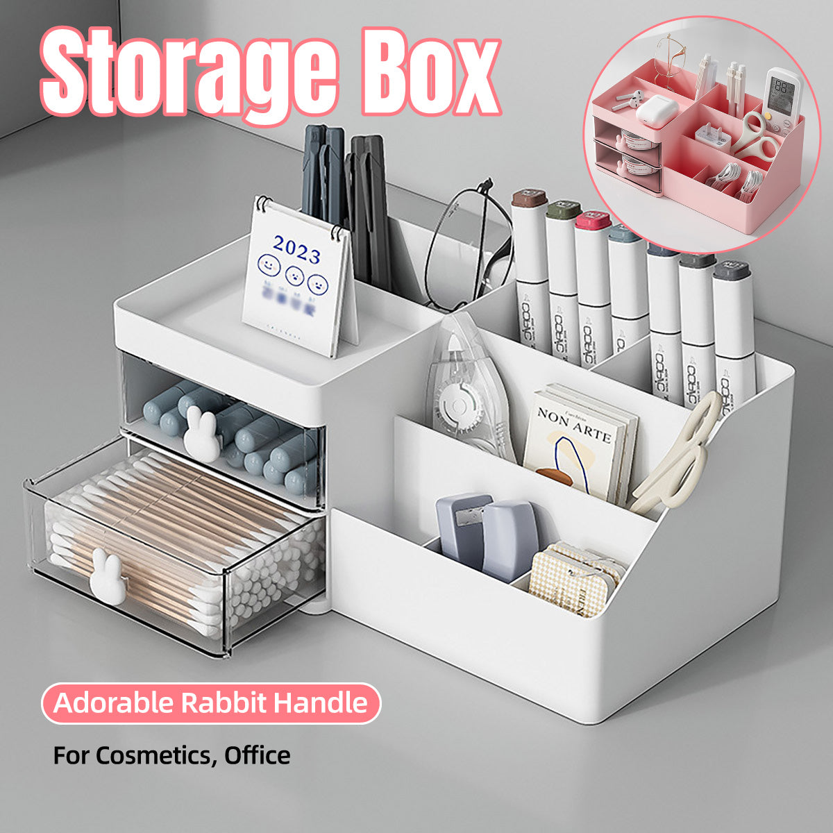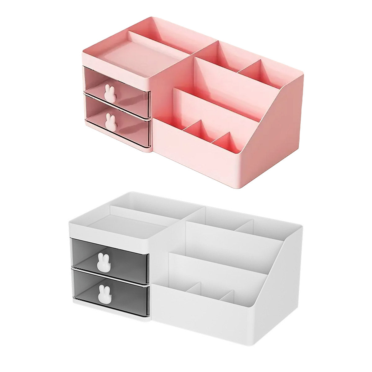Add a playful touch to your desk with this cartoon storage box featuring multiple compartments and transparent drawers. The rabbit-shaped handle and durable plastic build make it ideal for organising cosmetics, jewellery, stationery, and small accessories in bedrooms, offices, or study areas.