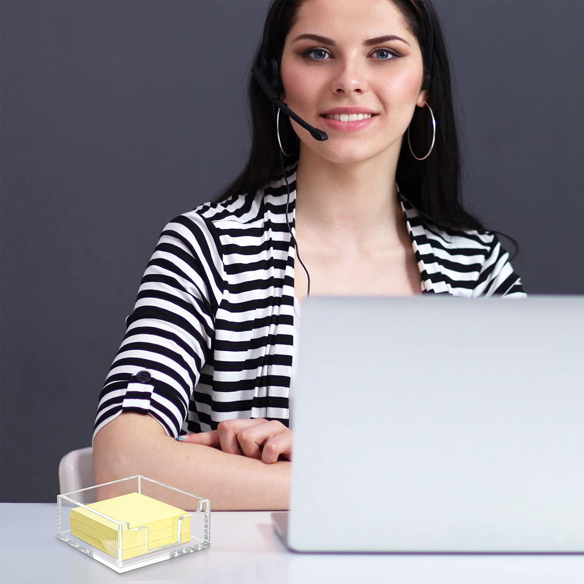 Clear Acrylic 4 Inch Sticky Note Holder Organizer for Desk