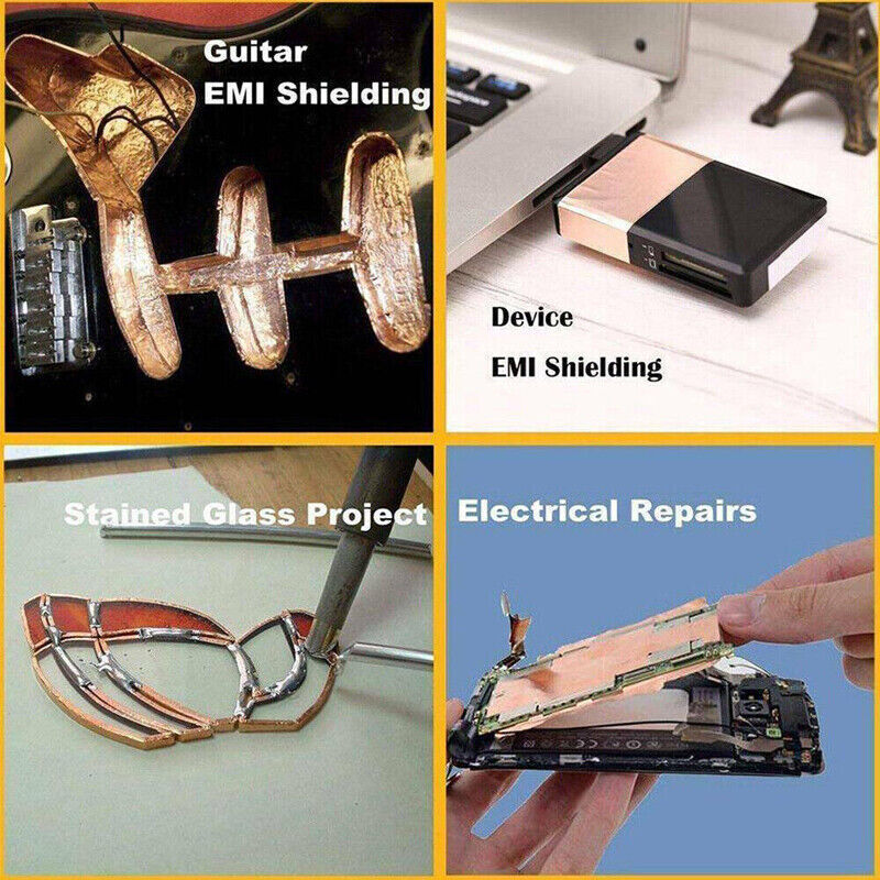 - Double-Sided Conductivity: Both foil and adhesive are conductive to maintain continuous paths on overlaps.