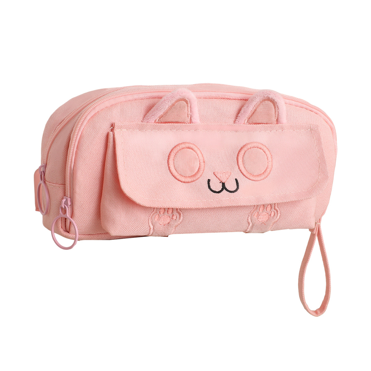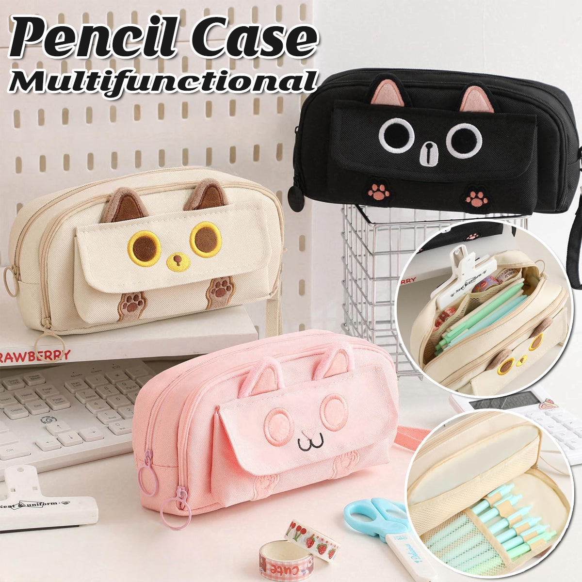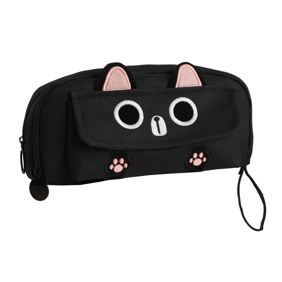 Embroidered Cat Pencil Case Multifunction Large Capacity