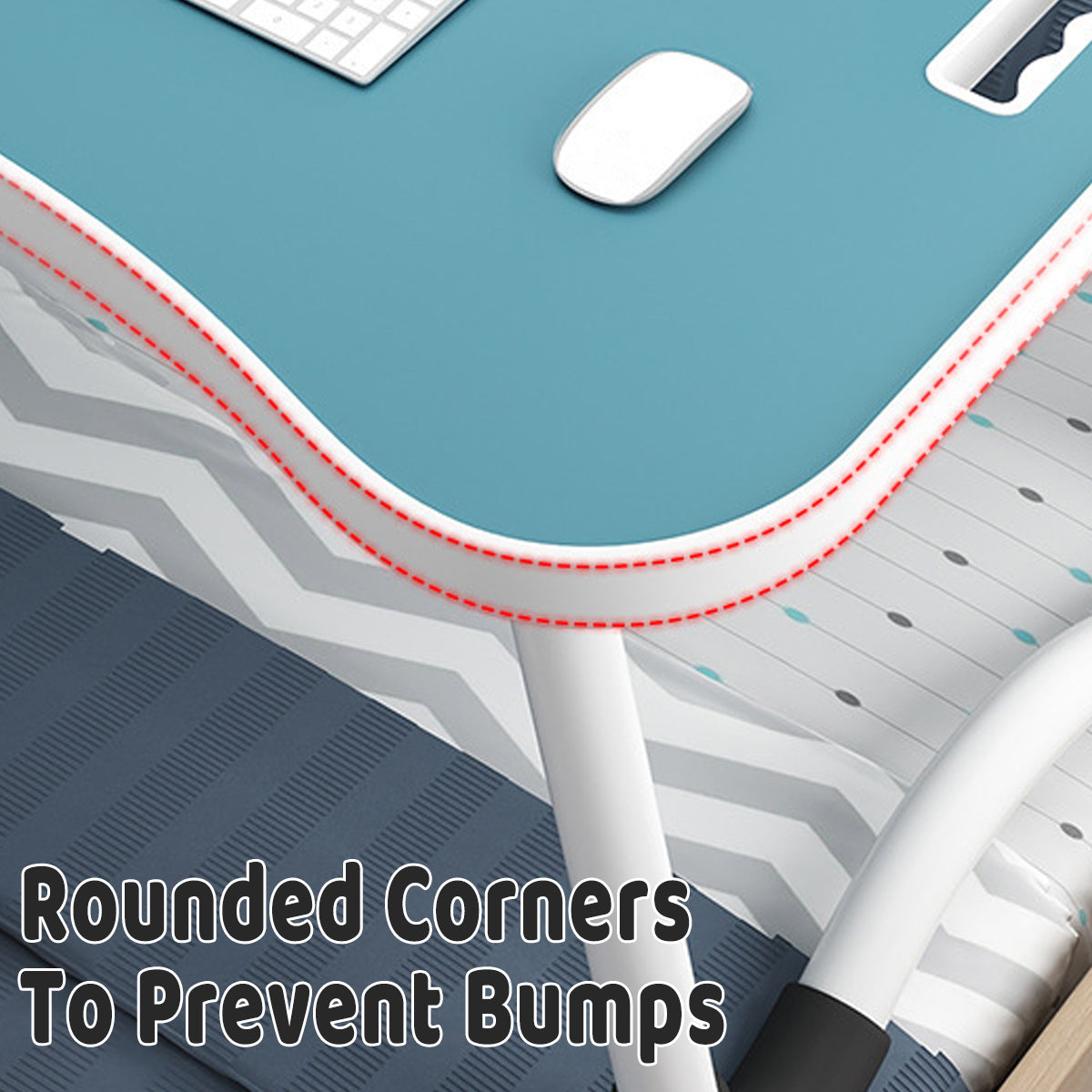 This foldable table upgrades home, study, or dorm setups and is suitable for use beside beds, sofas, or in offices. It features a vivid blue colour and a practical design with a device slot and cup holder for keeping essentials within reach. The multi-layered build includes a wear-resistant and scratch-resistant top, while rounded corners enhance safety. Its foldable structure allows easy storage for flexible daily use.