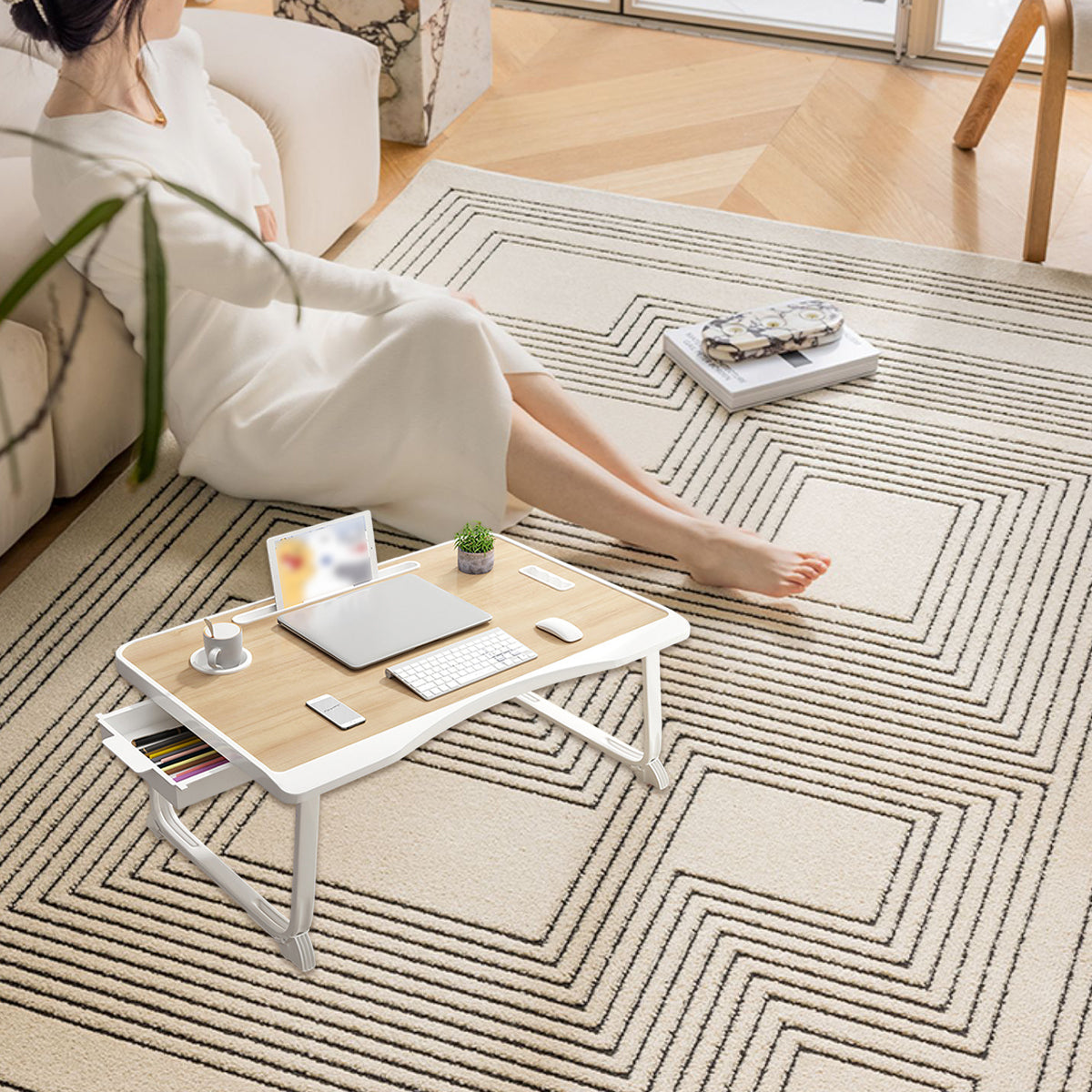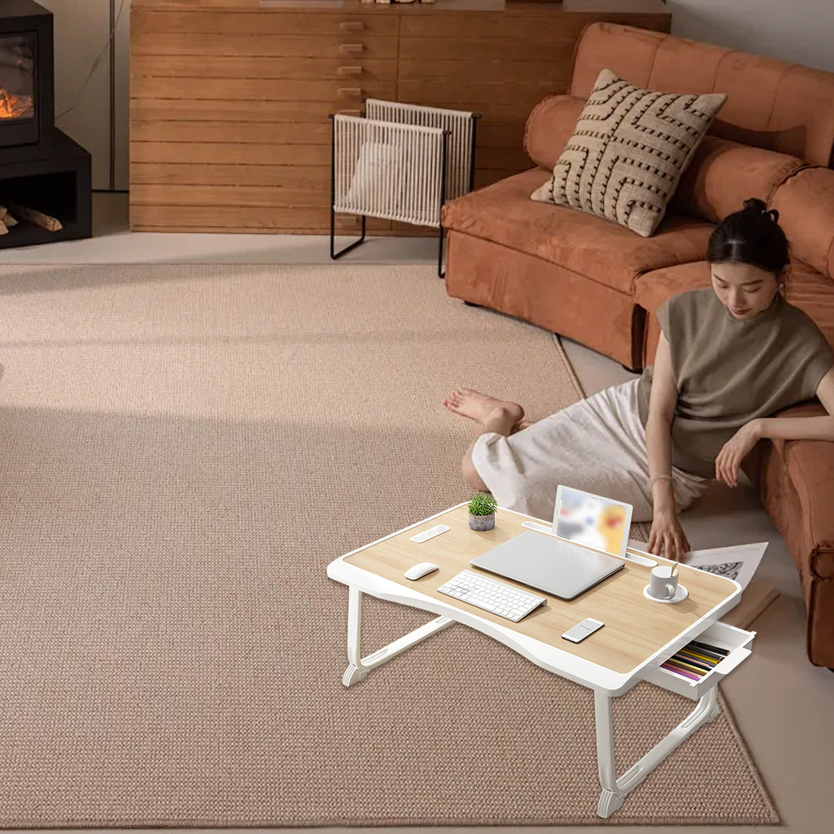 This folding table is a practical and convenient solution for creating a workspace on the bed, in the dormitory, or in any small area. It provides a stable surface for laptops, books, cups, and other items, making it suitable for working, studying, or enjoying breakfast in bed.