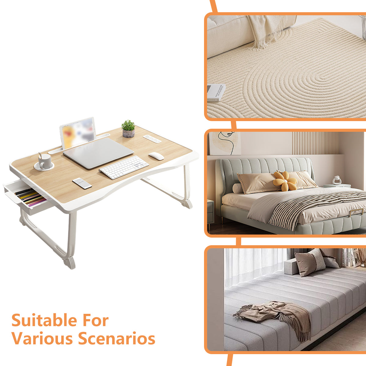 Folding Bed Desk Small Computer Table with Drawer for Study and Bedroom