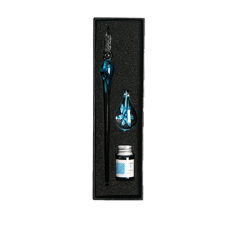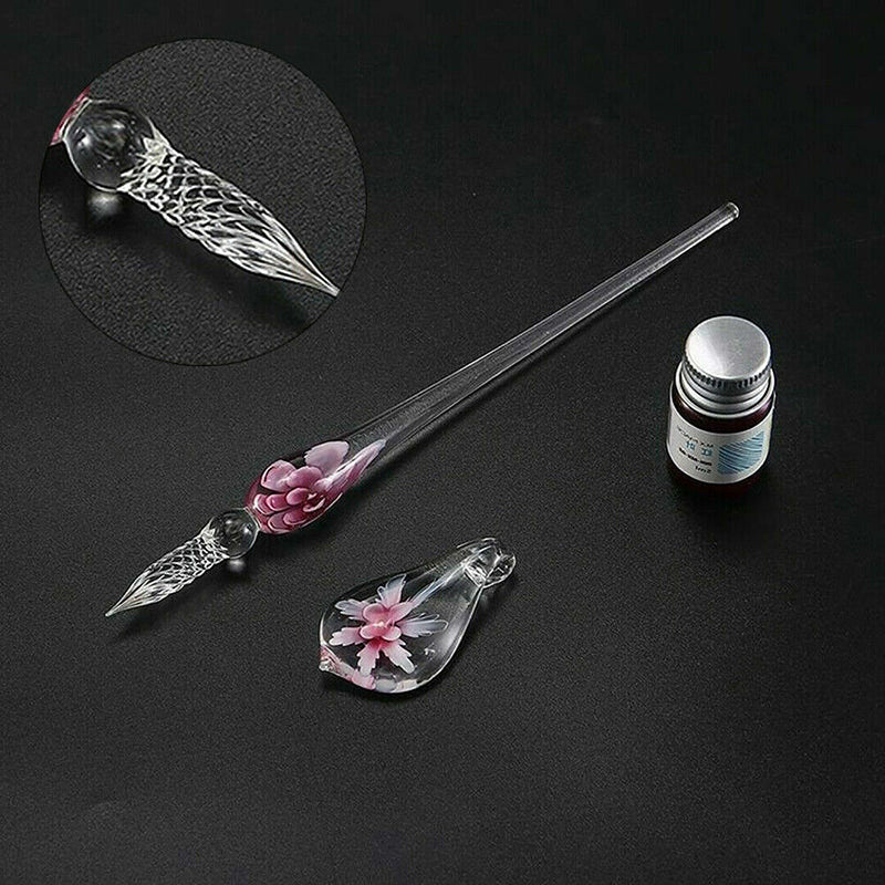 This crystal glass dip pen set offers a pleasant writing experience and elegant display. The embedded floral pattern and threaded tip support smooth ink flow, while the included penholder and ink make it suitable for calligraphy, signatures, and short notes.