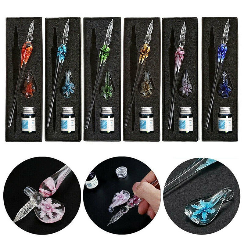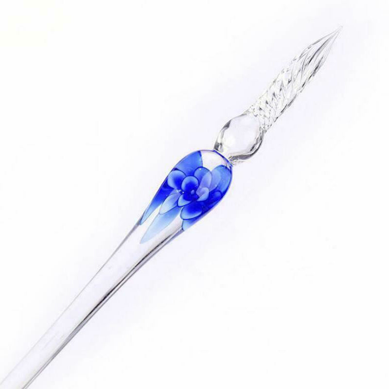 Glass Dip Pen Writing Set Floral Pattern with Penholder and Ink