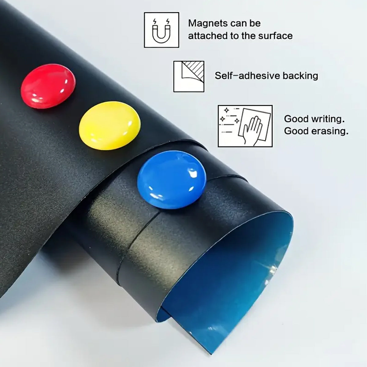 Transform any space into an interactive area with this magnetic blackboard sticker. Ideal for home organisation, office notes, school projects, or kids’ creative drawing, it features a smooth writing surface and strong magnetic absorption. The self-adhesive backing allows easy installation, making it a versatile solution for reminders, sketches, or decorative displays in various settings.