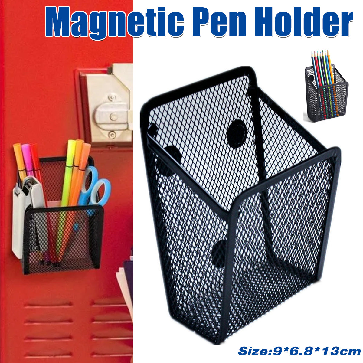 Magnetic Mesh Pen Holder Square Black Iron Desk Organizer
