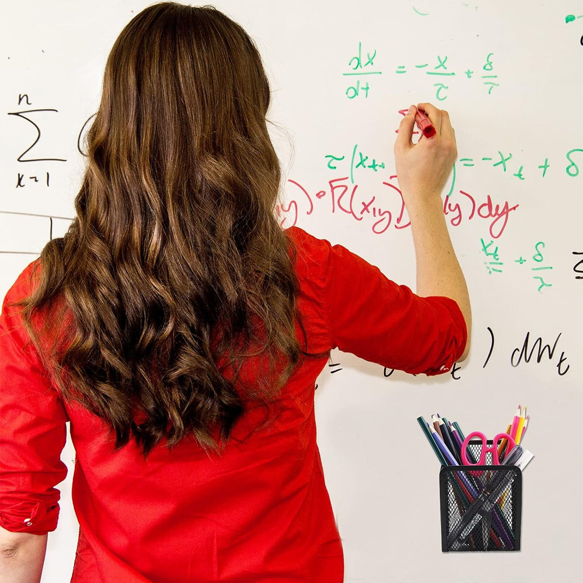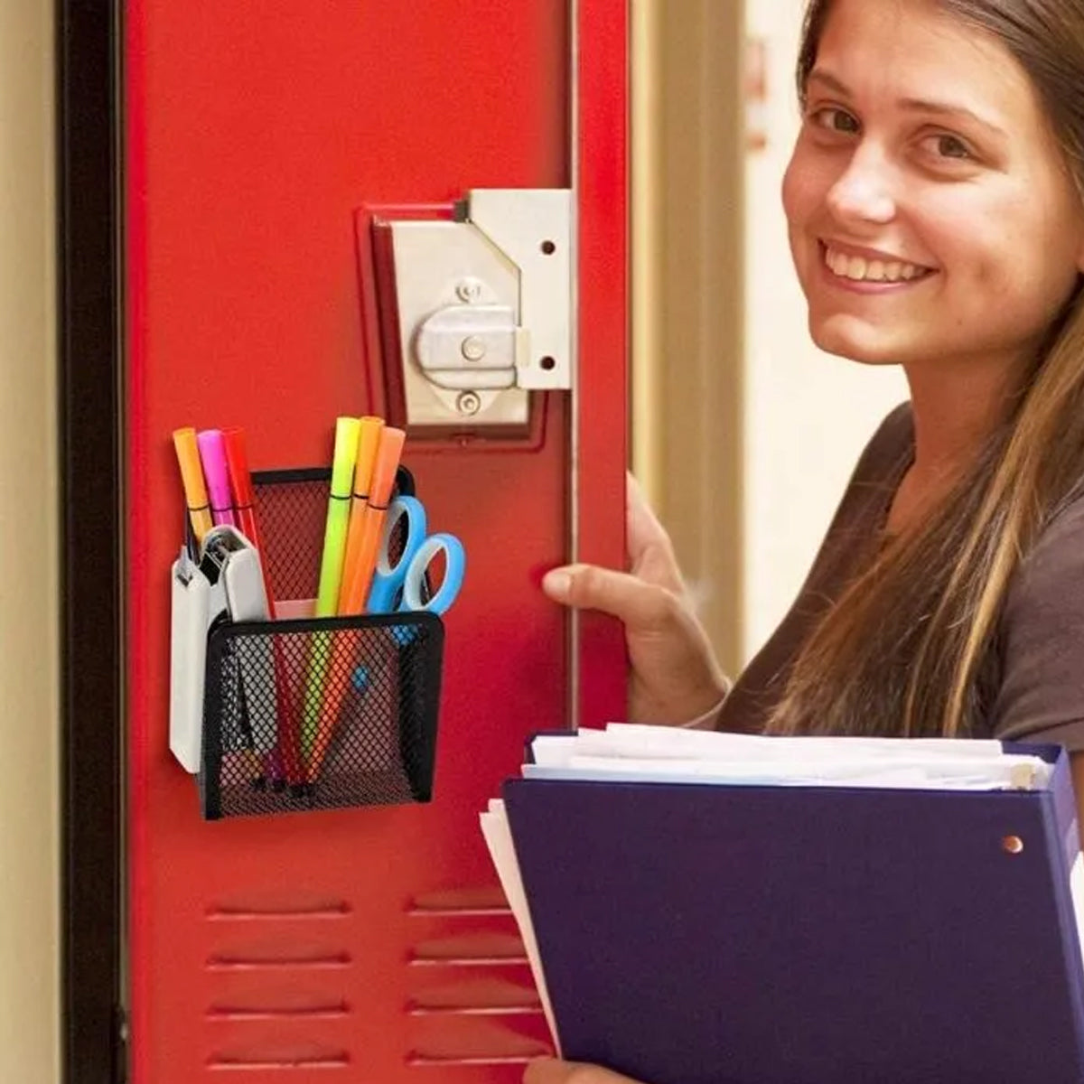 Organise your workspace with this magnetic iron mesh pen holder. The strong magnetic back secures to metal surfaces such as filing cabinets, refrigerators, or lockers, while the breathable square mesh design keeps pens, pencils, markers, and scissors accessible and dry in a compact footprint.