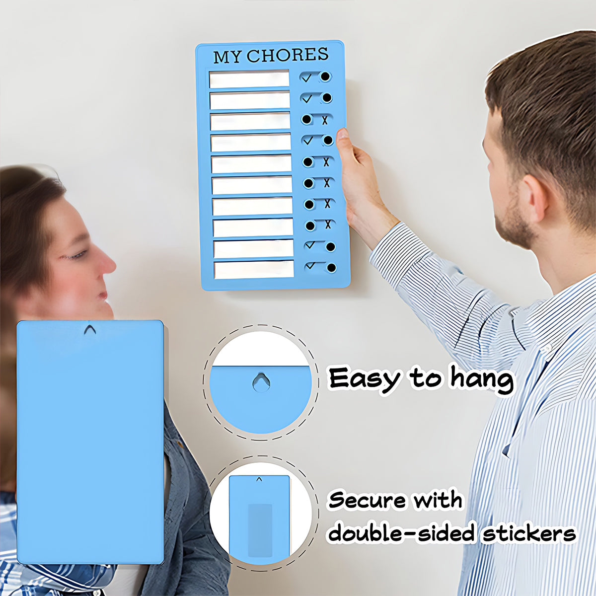 This reusable memo board provides a practical way to list tasks and reminders for daily use. Designed with movable sliders that stay securely in place when selected, it helps keep important chores or notes visible in RVs, homes, and offices.